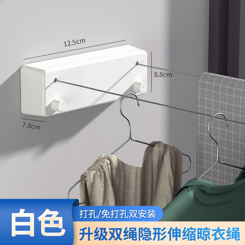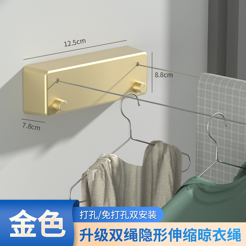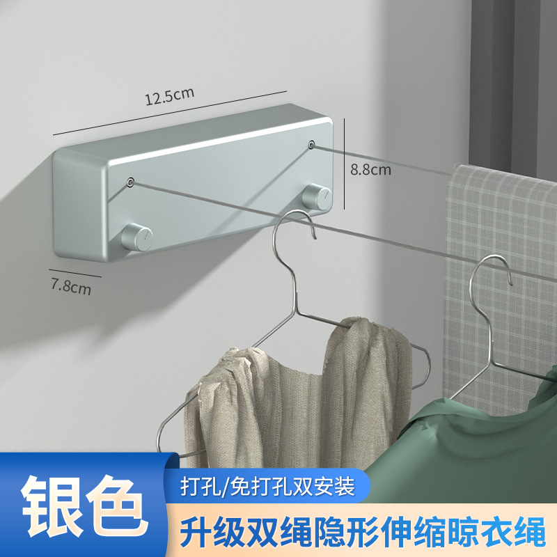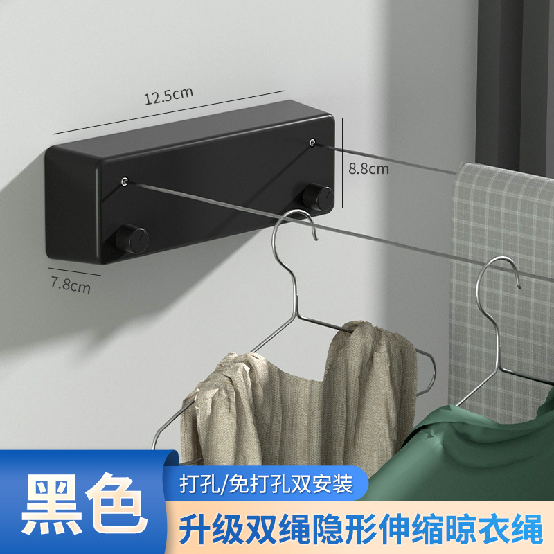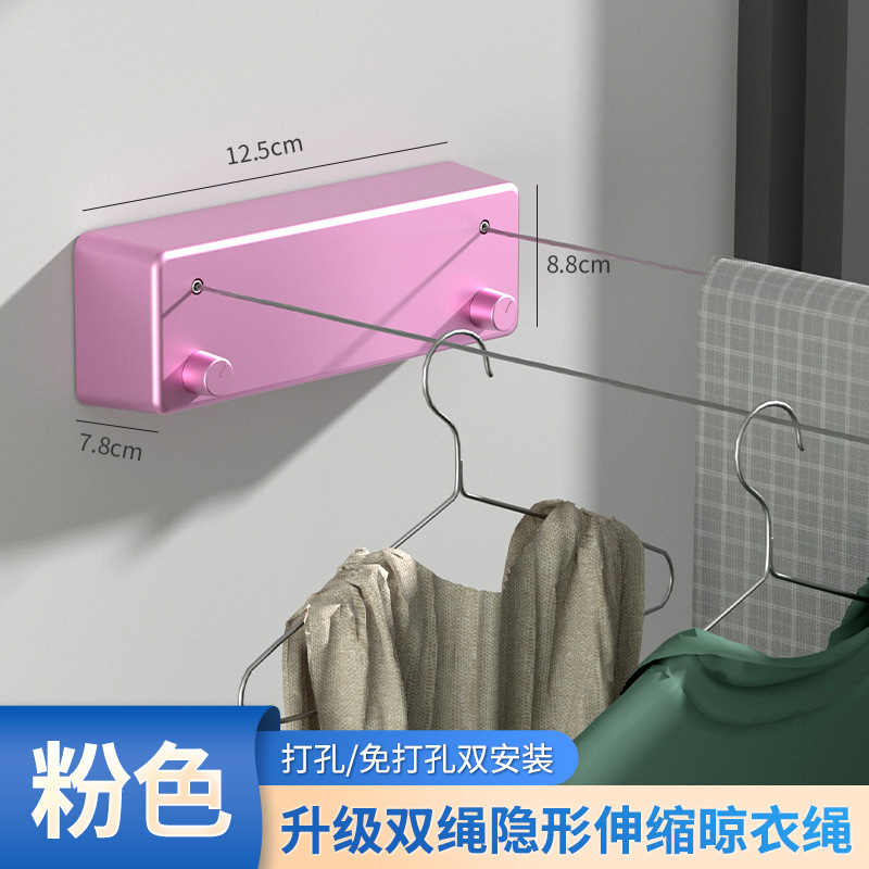 不锈钢晾衣双绳 单绳室内隐形挂衣绳 收缩晒衣神器