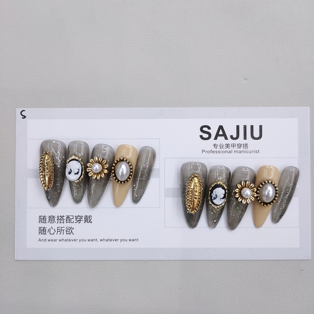 新款手工穿戴甲美甲ins风高级穿戴成品高级感中长款可重复佩戴