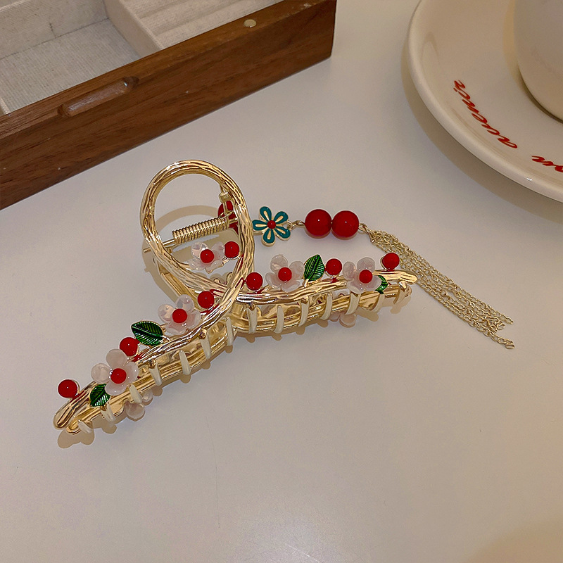 复古滴油花朵流苏抓夹发夹盘发鲨鱼夹发抓发饰Alloy hair claw