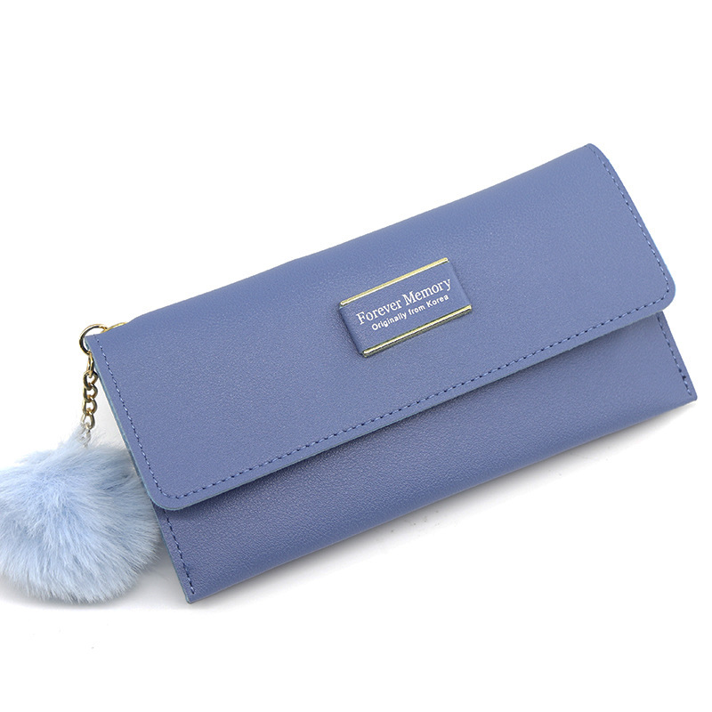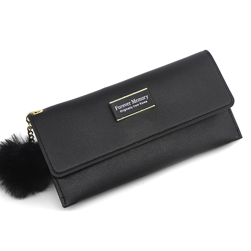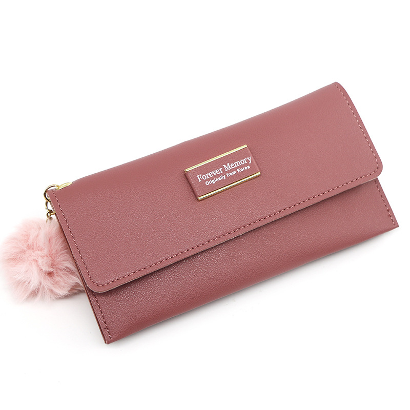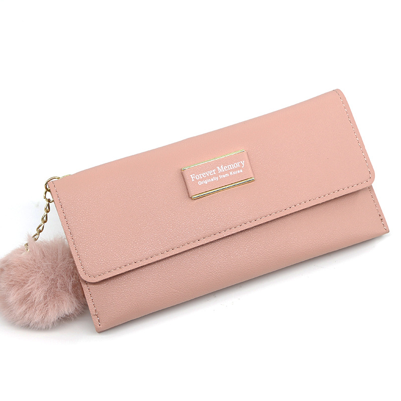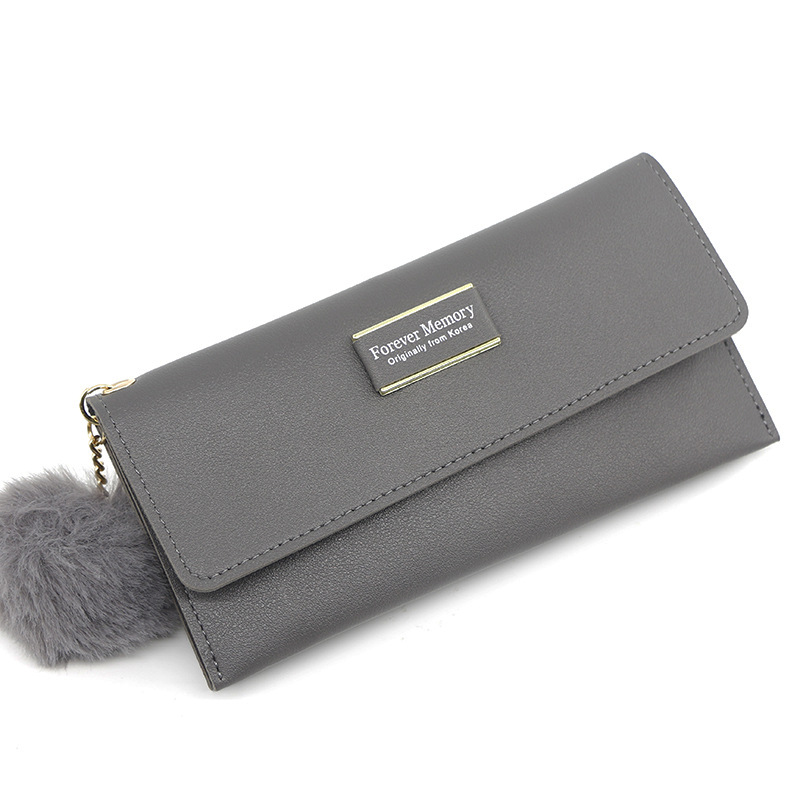 女士长款钱包五金蝴蝶结纯色毛球钱夹零钱包手拿包女式长包卡包