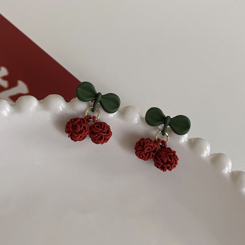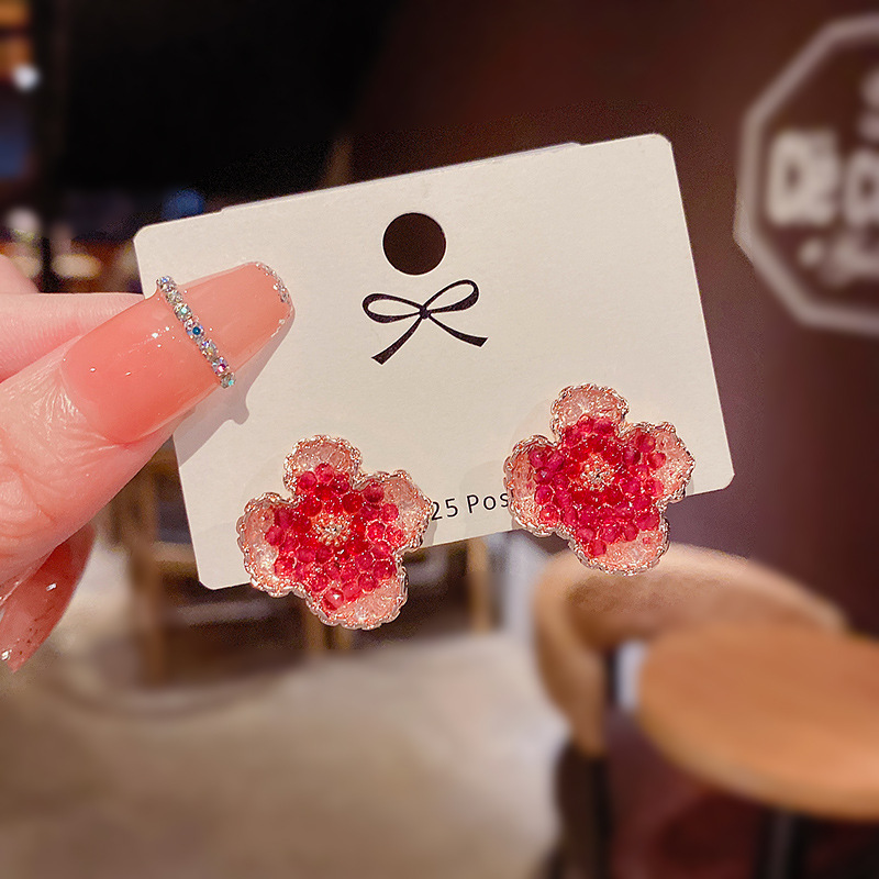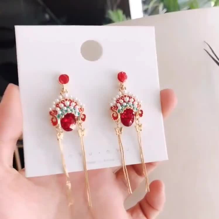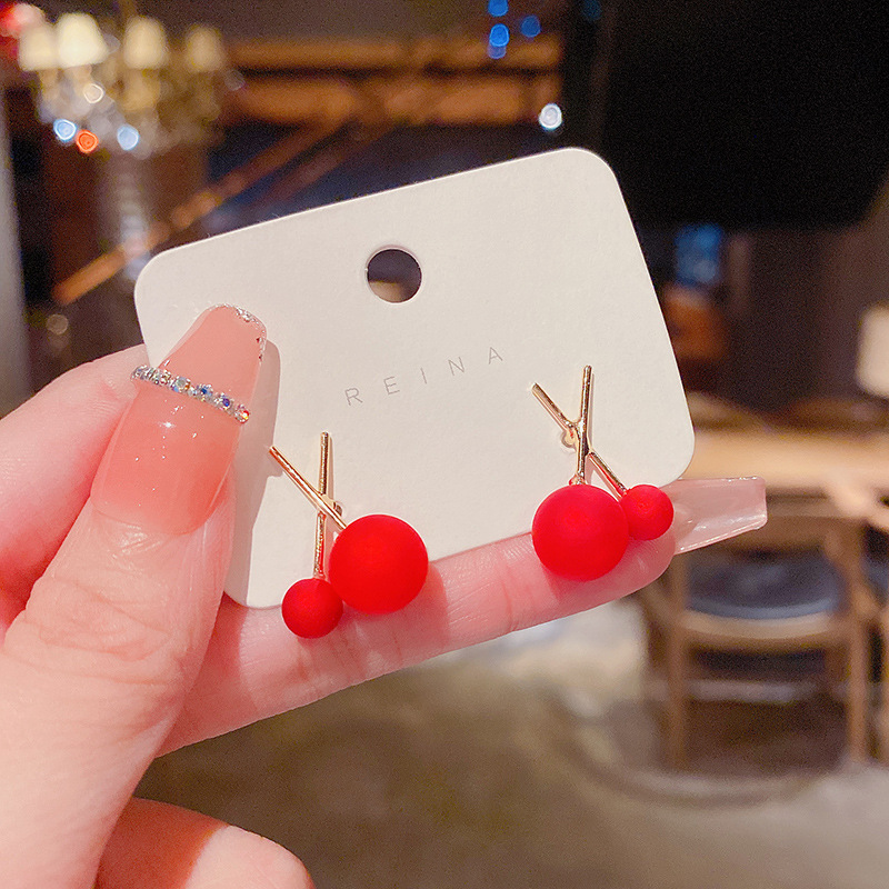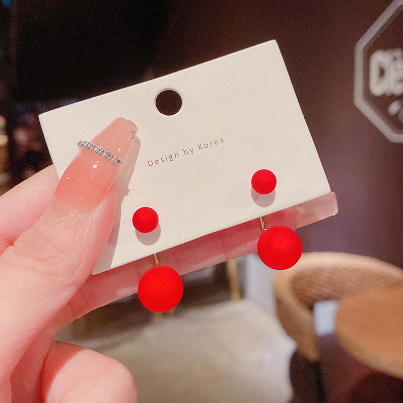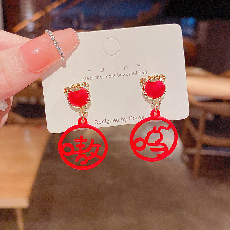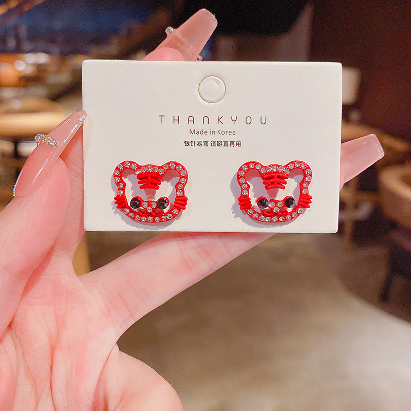 饰品925银针潮喜庆红色珍珠耳钉小众高级设计感生肖小老虎耳环女