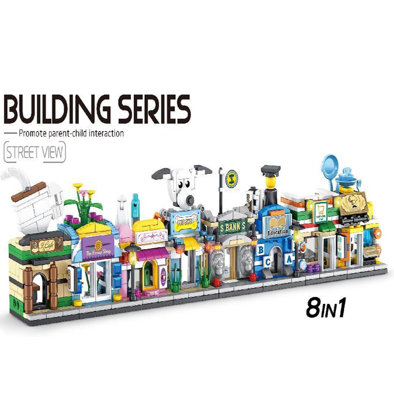 益智积木拼装城市街景系列八小款可合成大街景早教儿童玩具批发