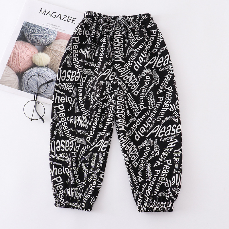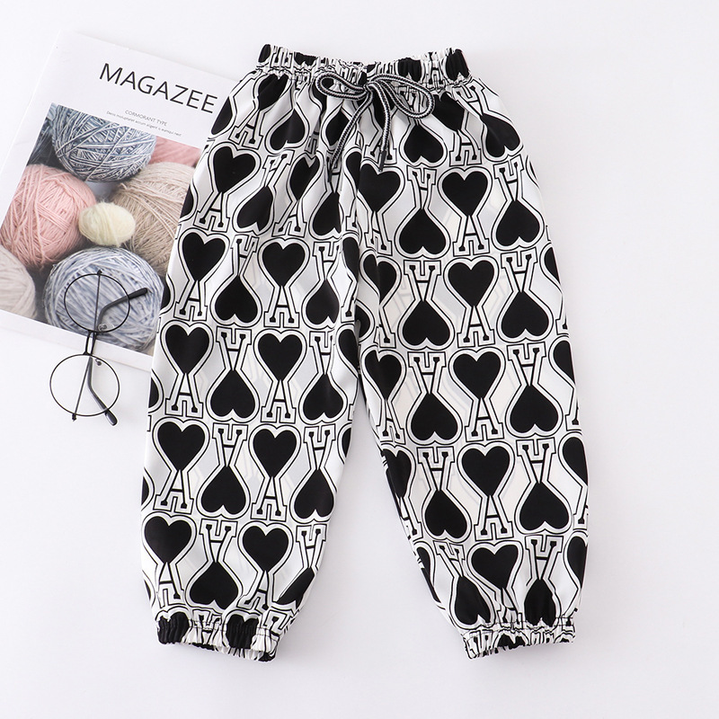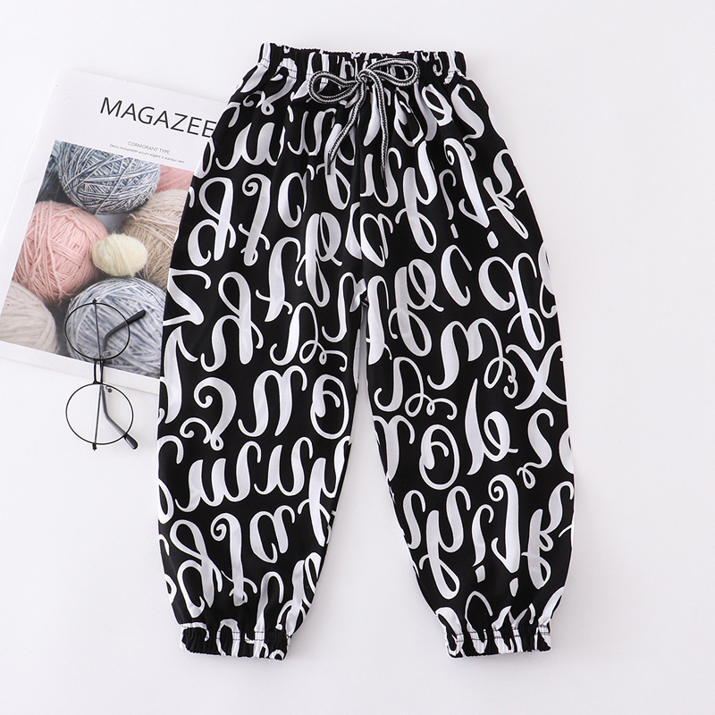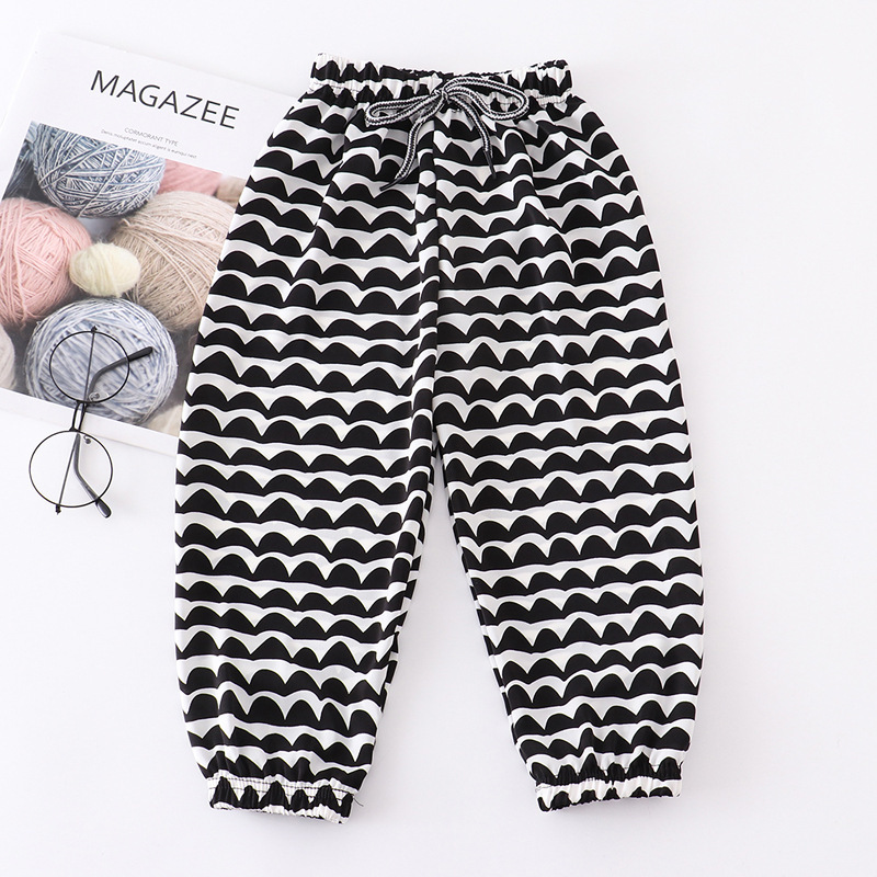 新款轻薄时尚灯笼裤儿童黑白时尚蝴蝶结凉爽防蚊裤中小童休闲长裤