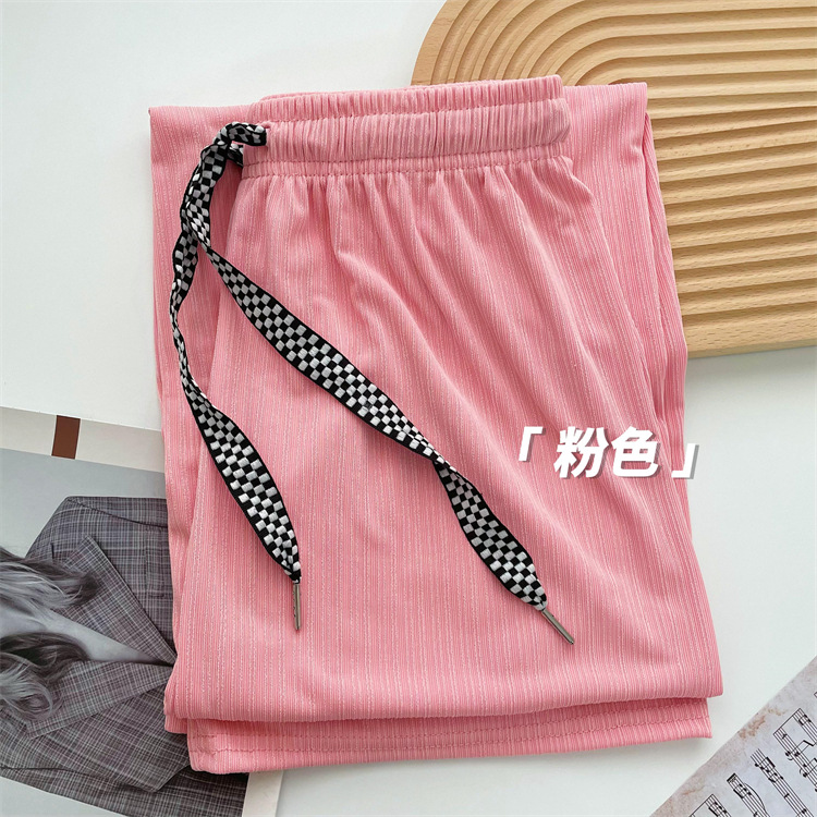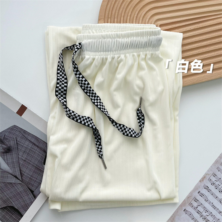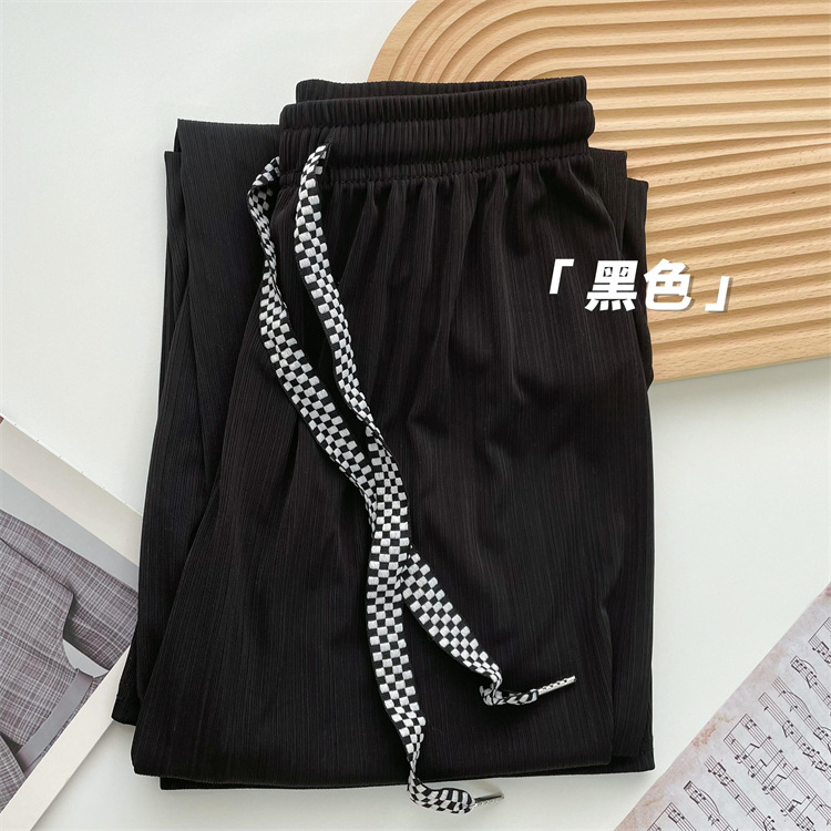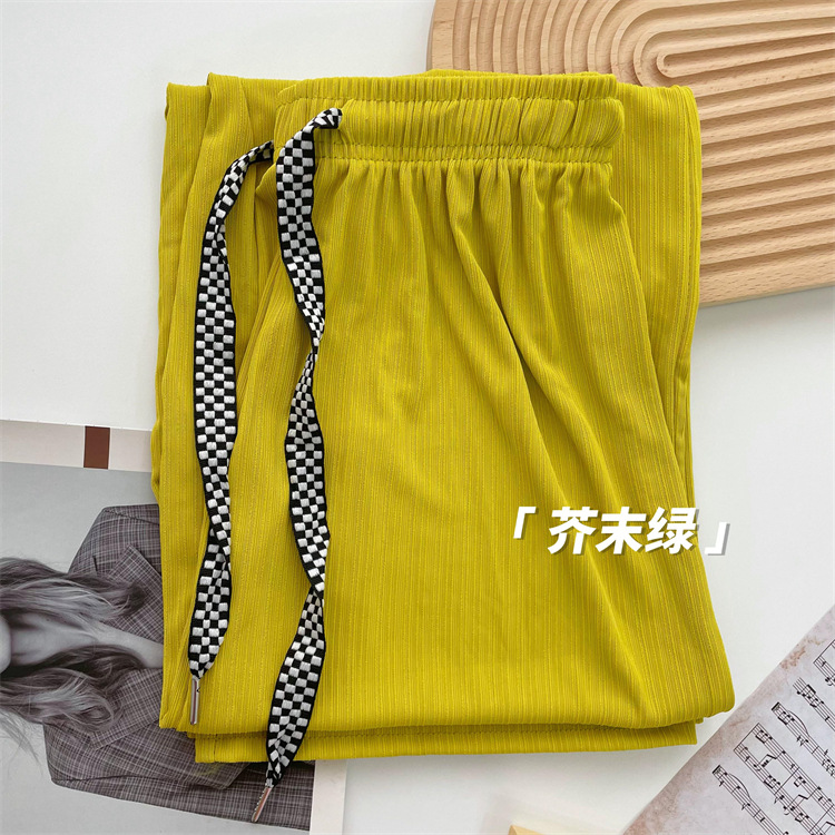 美人条阔腿裤显瘦夏季新款休闲裤奶油冰丝女垂坠感直筒小个子长裤