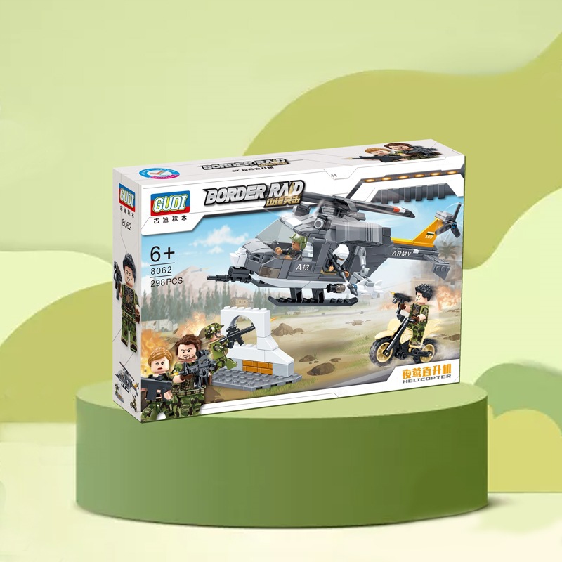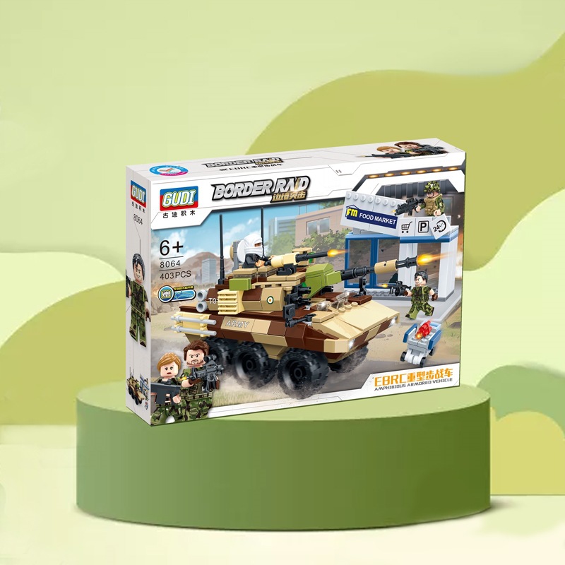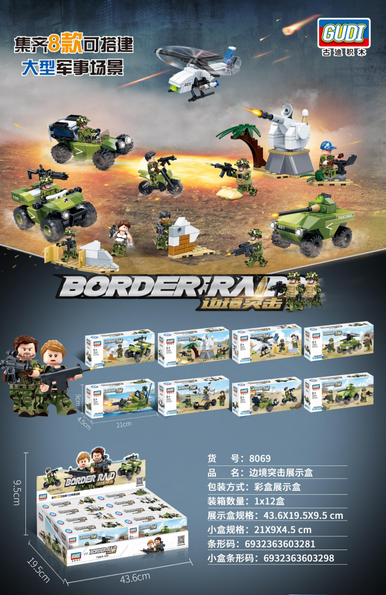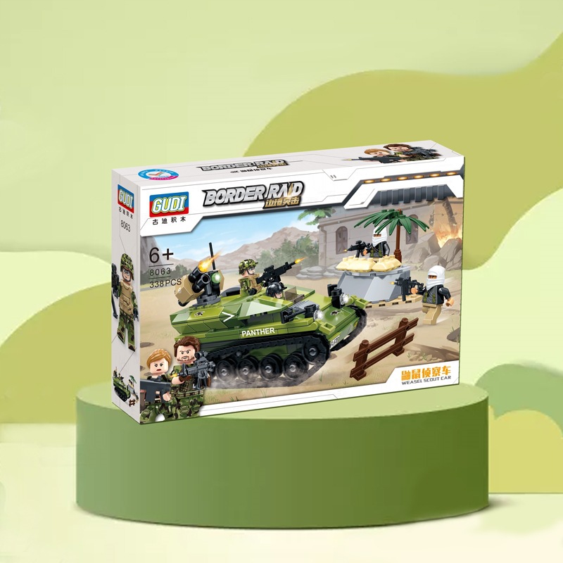 古迪积木拼装边境突击军事坦克装甲车儿童益智拼插玩具8061-8069