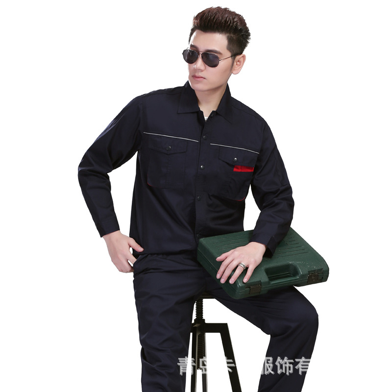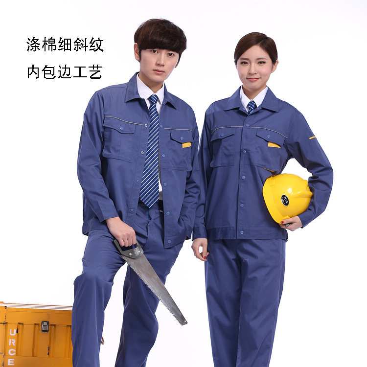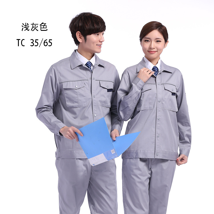 夏季工作服长袖保洁工衣厂服涤棉工装外套薄款车间工地劳保服批发