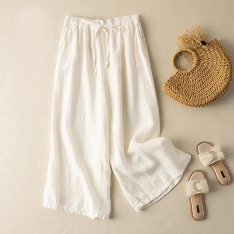 坠感棉麻七分裤女夏高腰薄款阔腿裤子女宽松女款百搭休闲裤
