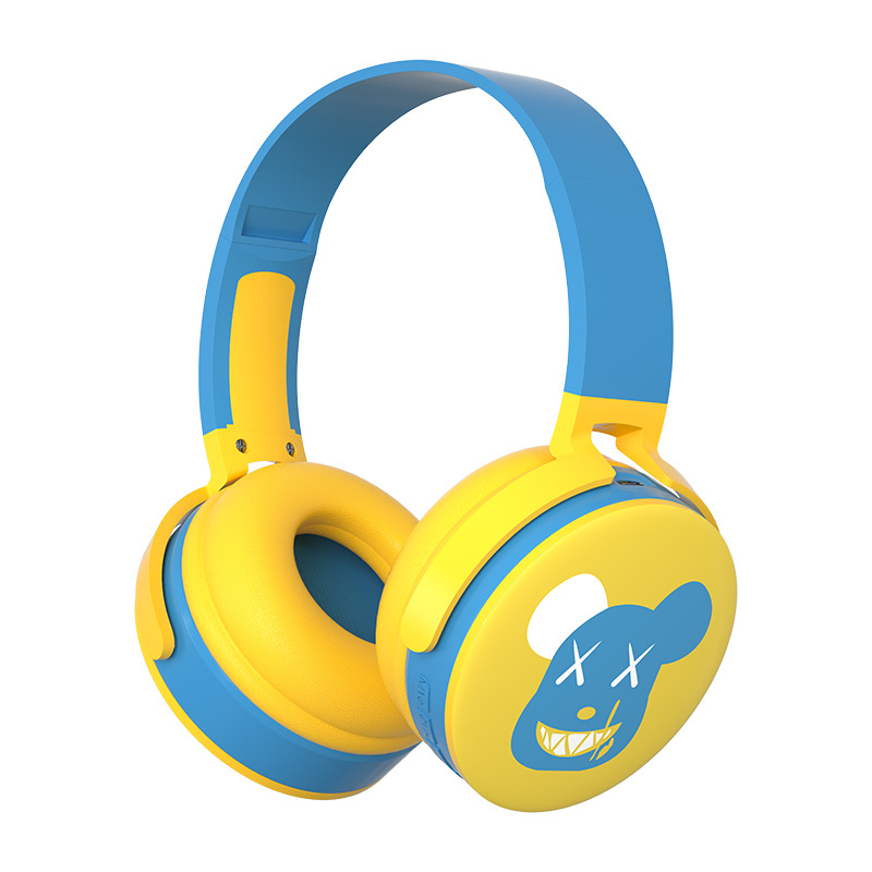 跨境新款头戴式蓝牙耳机涂鸦暴力熊直播网课可通话蓝牙耳机重低音