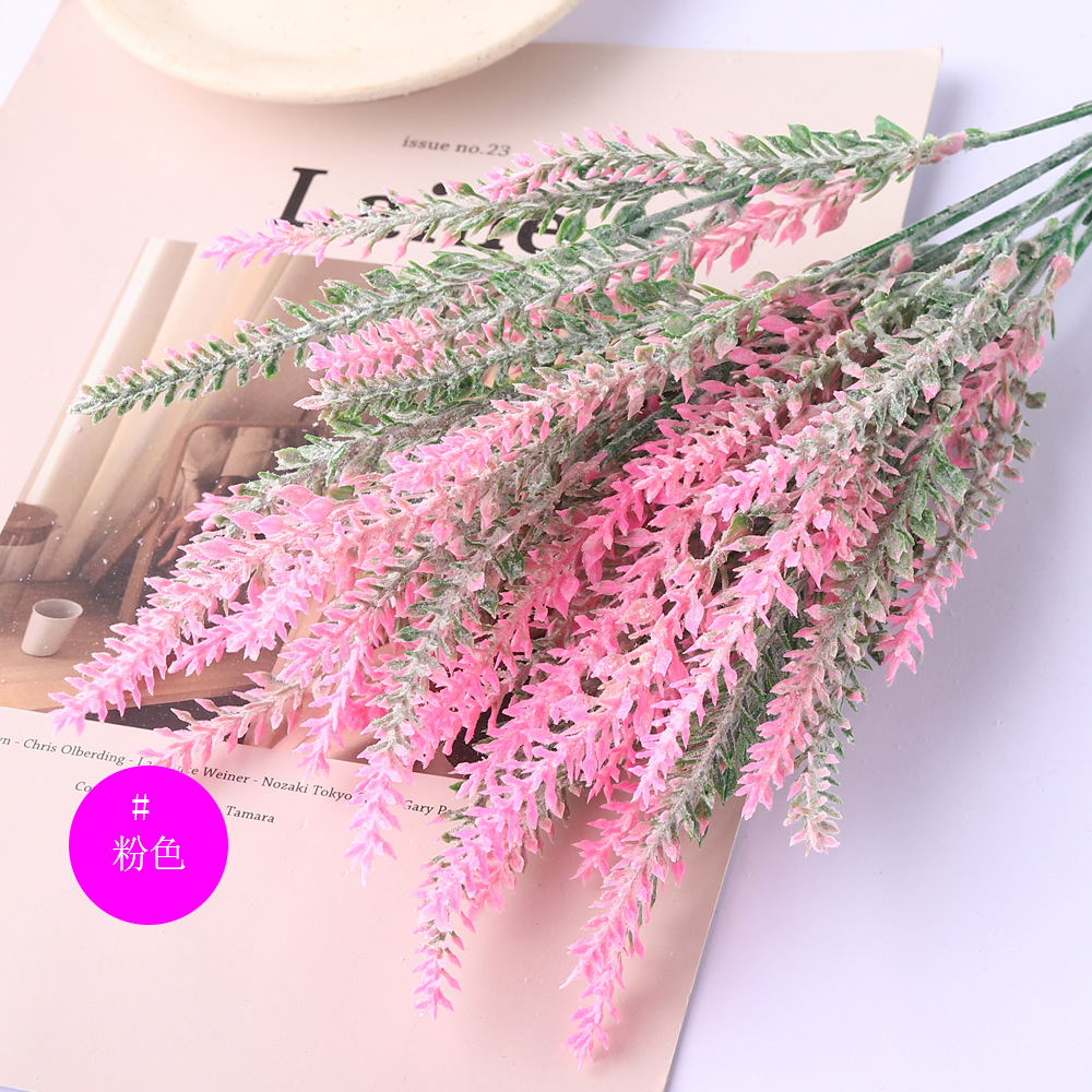 麦穗5叉植绒仿真薰衣草 田园风婚庆仿真花植物盆栽塑料假花束批发