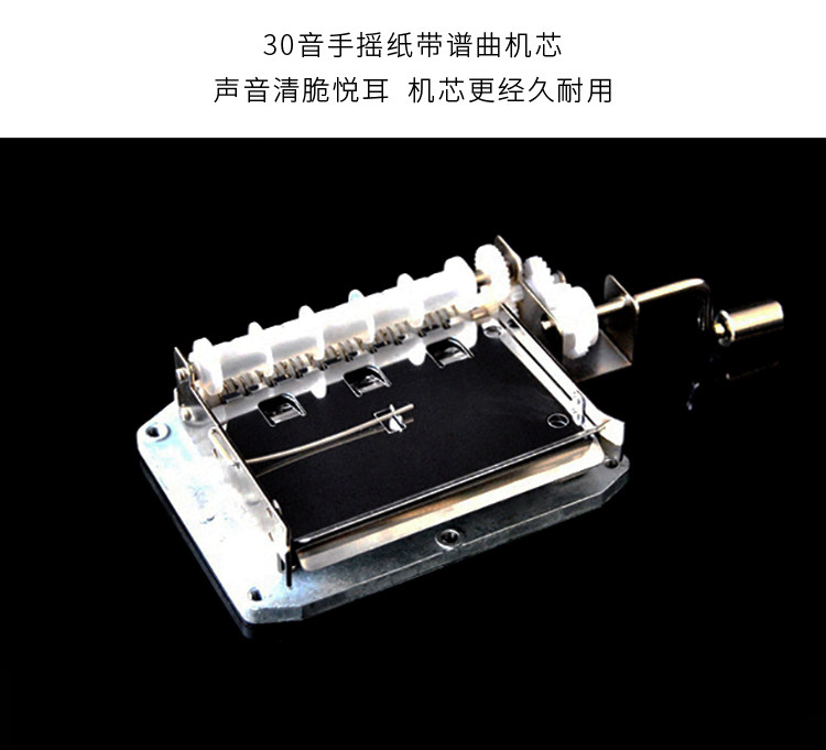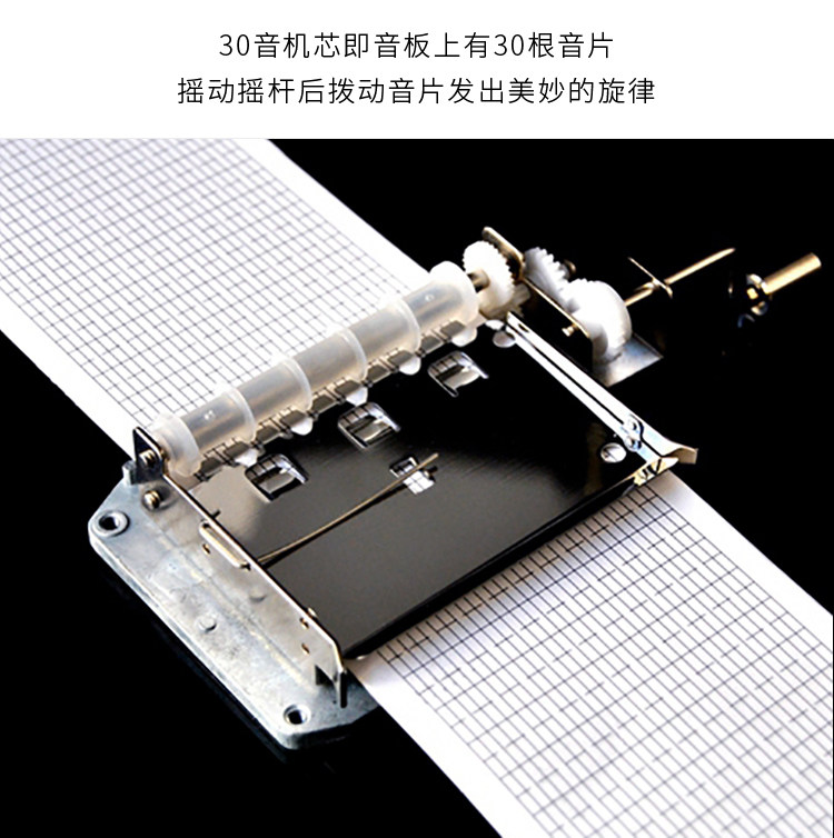 韵升30音diy手摇纸带谱曲音乐盒机芯八音盒组装维修配件送打孔器