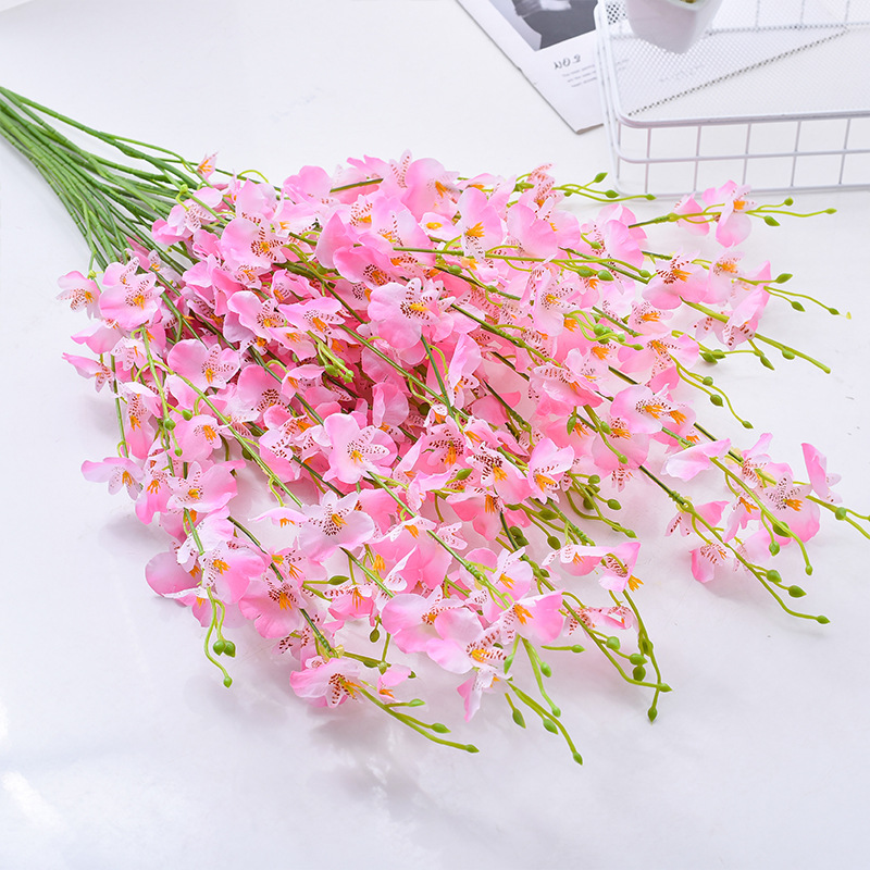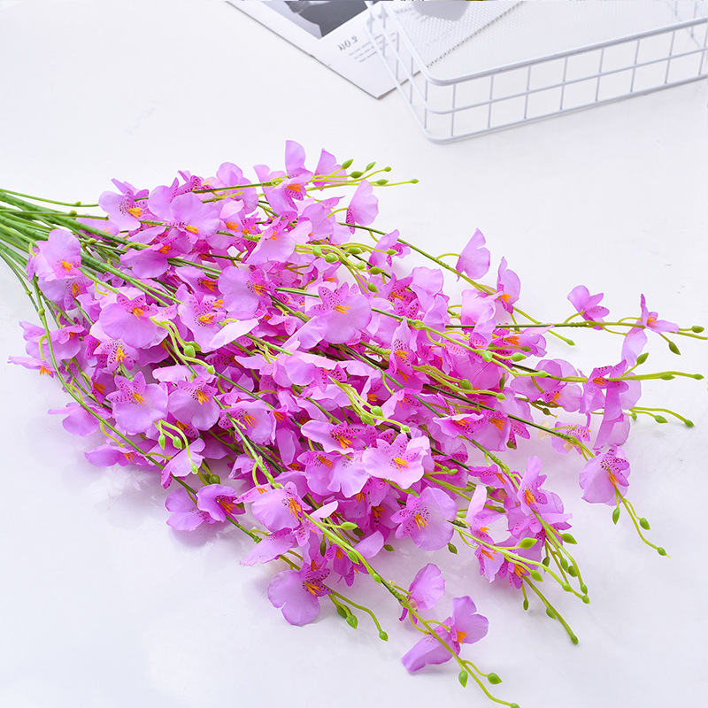 5叉黄色跳舞兰仿真高档花婚庆家居装饰文心蝴蝶兰假花束 厂家批发