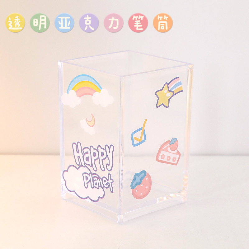 简约透明亚克力笔筒收纳盒 创意diy桌面收纳筐 方形大容量笔盒