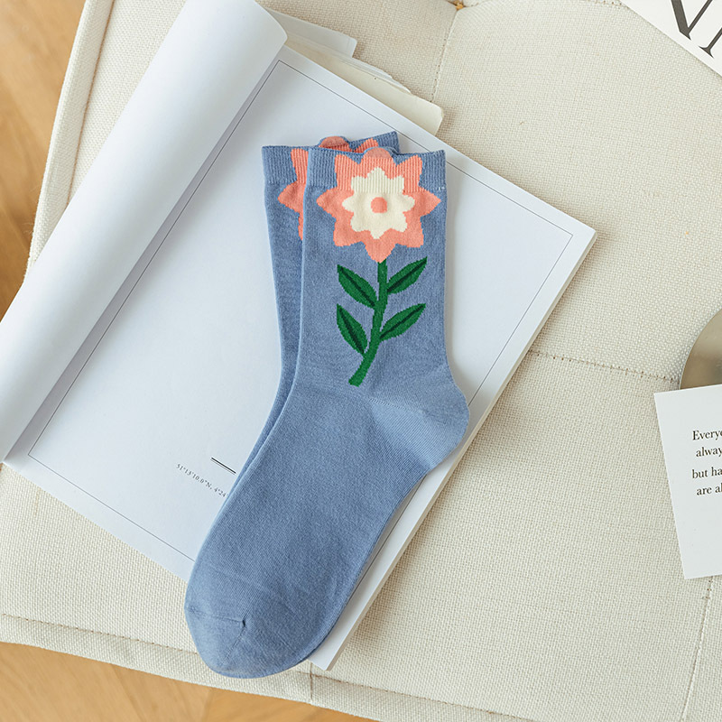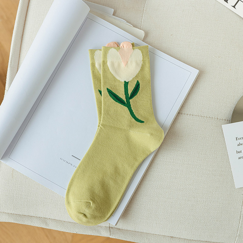 夏季新款立体花朵中筒袜子ins潮大东门百搭郁金香堆堆袜可爱长袜