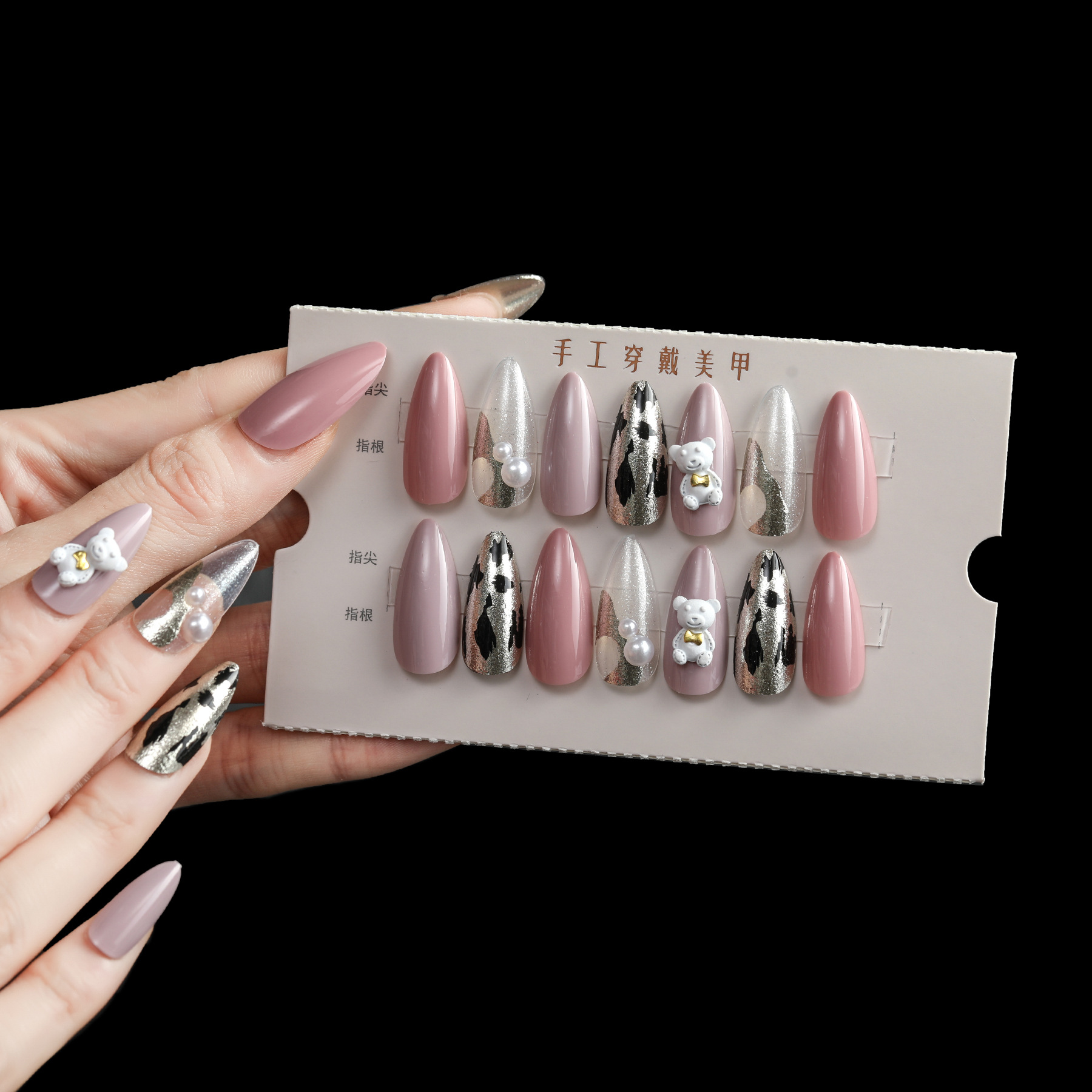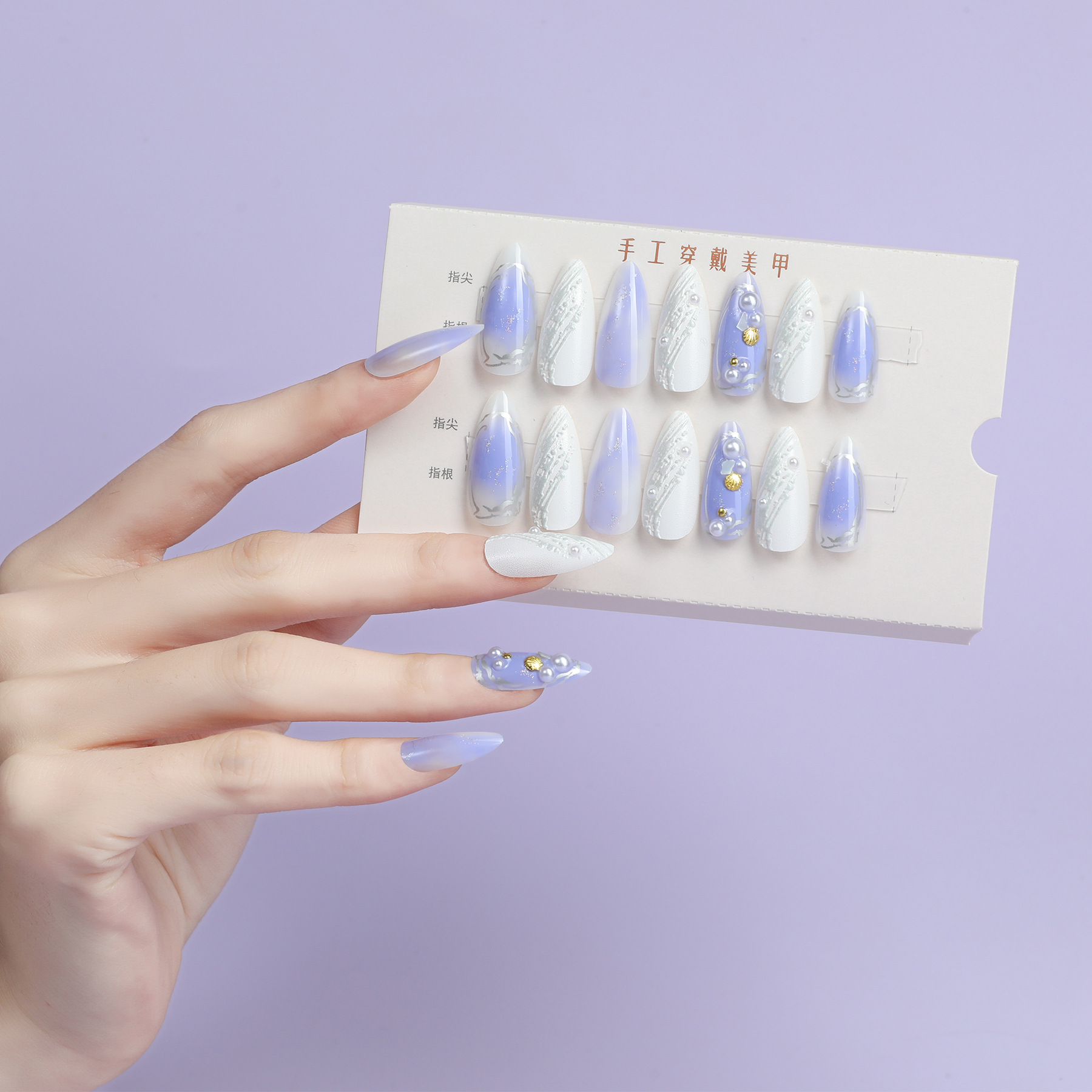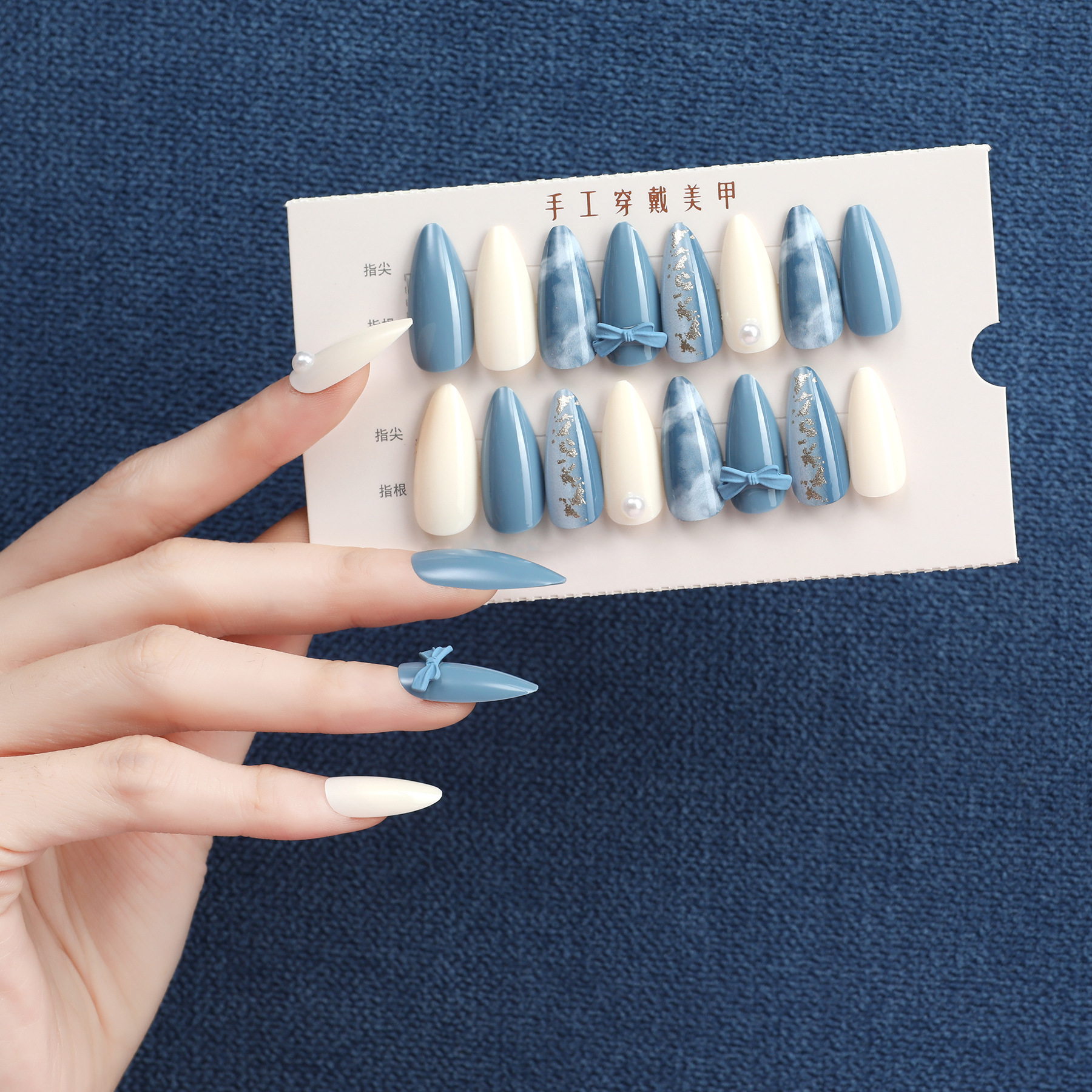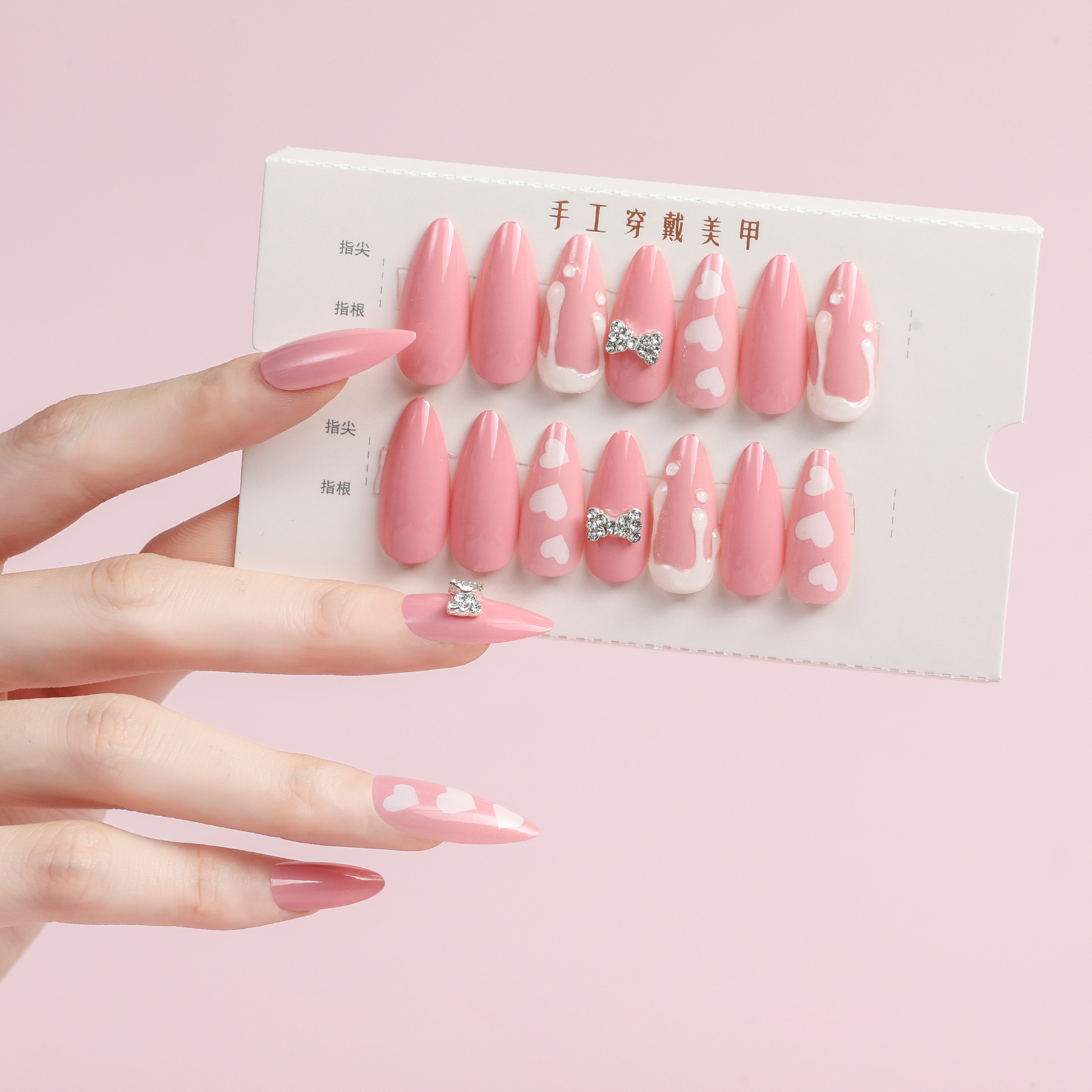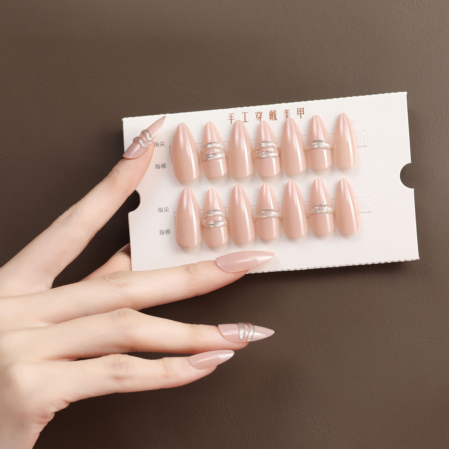 抖音热销30片点钻杏仁穿戴甲假指甲手工美甲贴片成品甲片配工具包