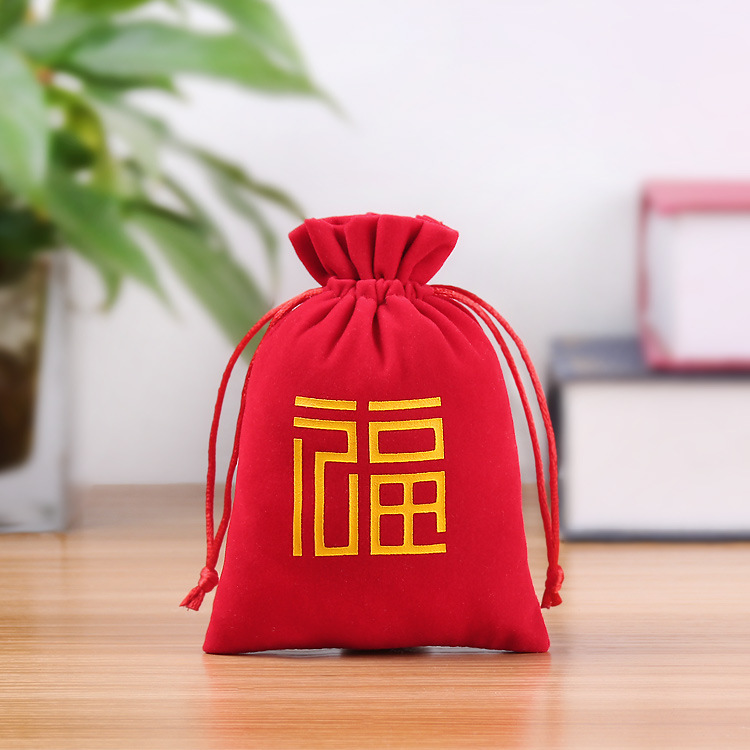 【福字绒布袋】首饰袋抽绳束口袋礼品饰品包装袋批发直销