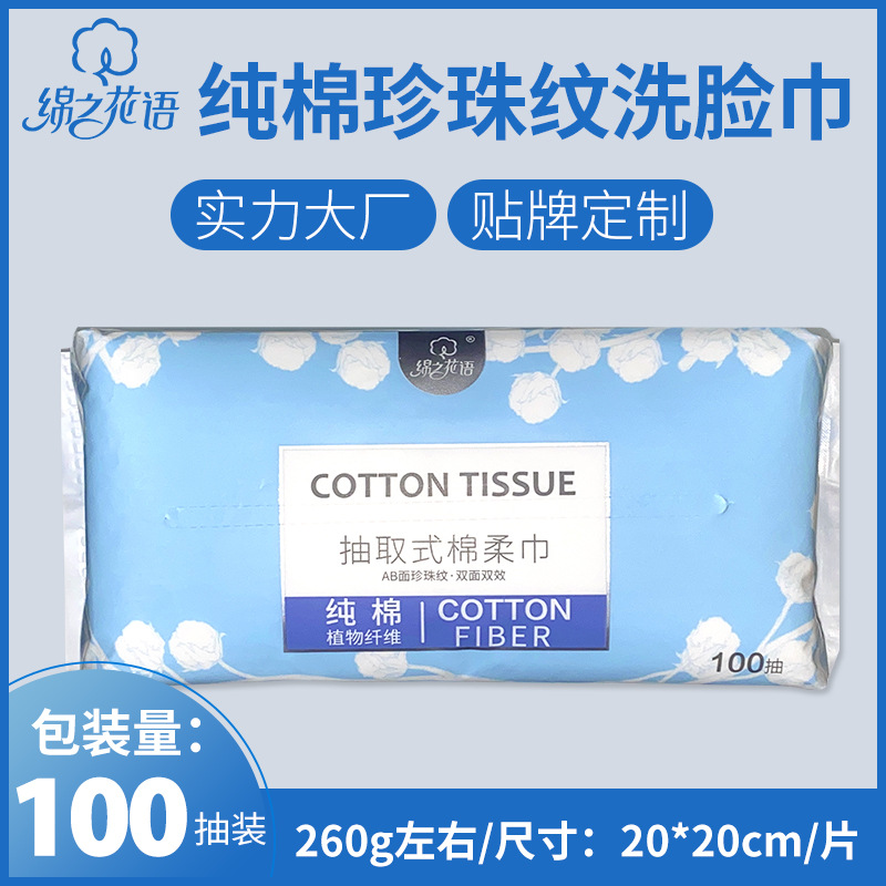绵之花语100抽纯棉洗脸巾一次性抽取式洁面巾3D珍珠纹擦脸棉柔巾