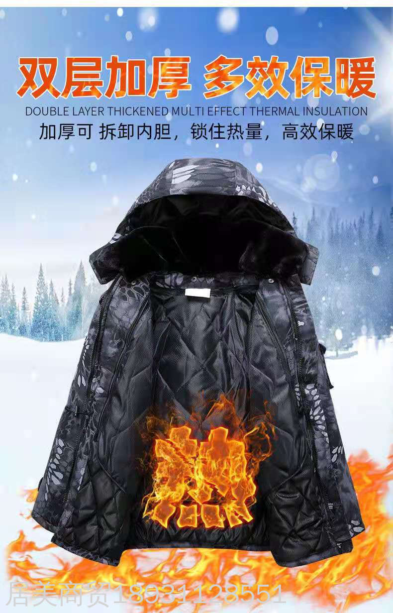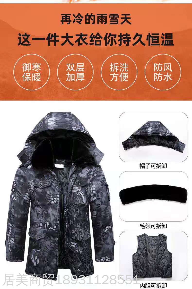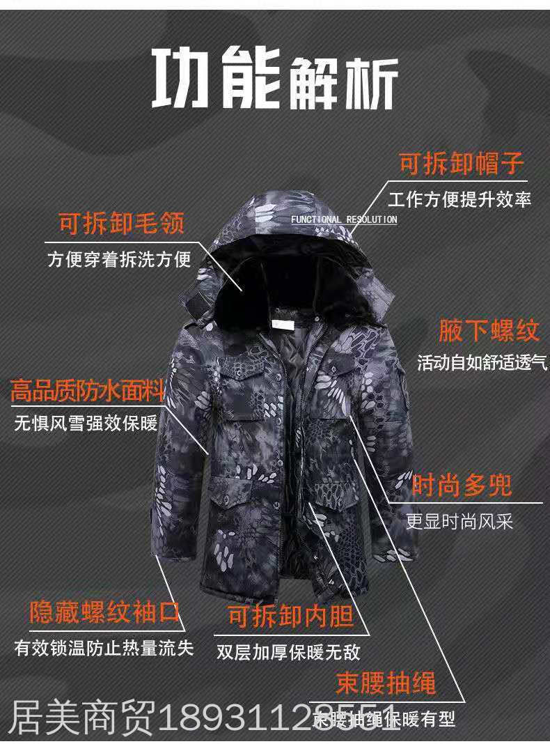 冬季荒漠迷彩大衣男保安冷库户外训练加厚保暖棉大衣抗寒劳保棉服