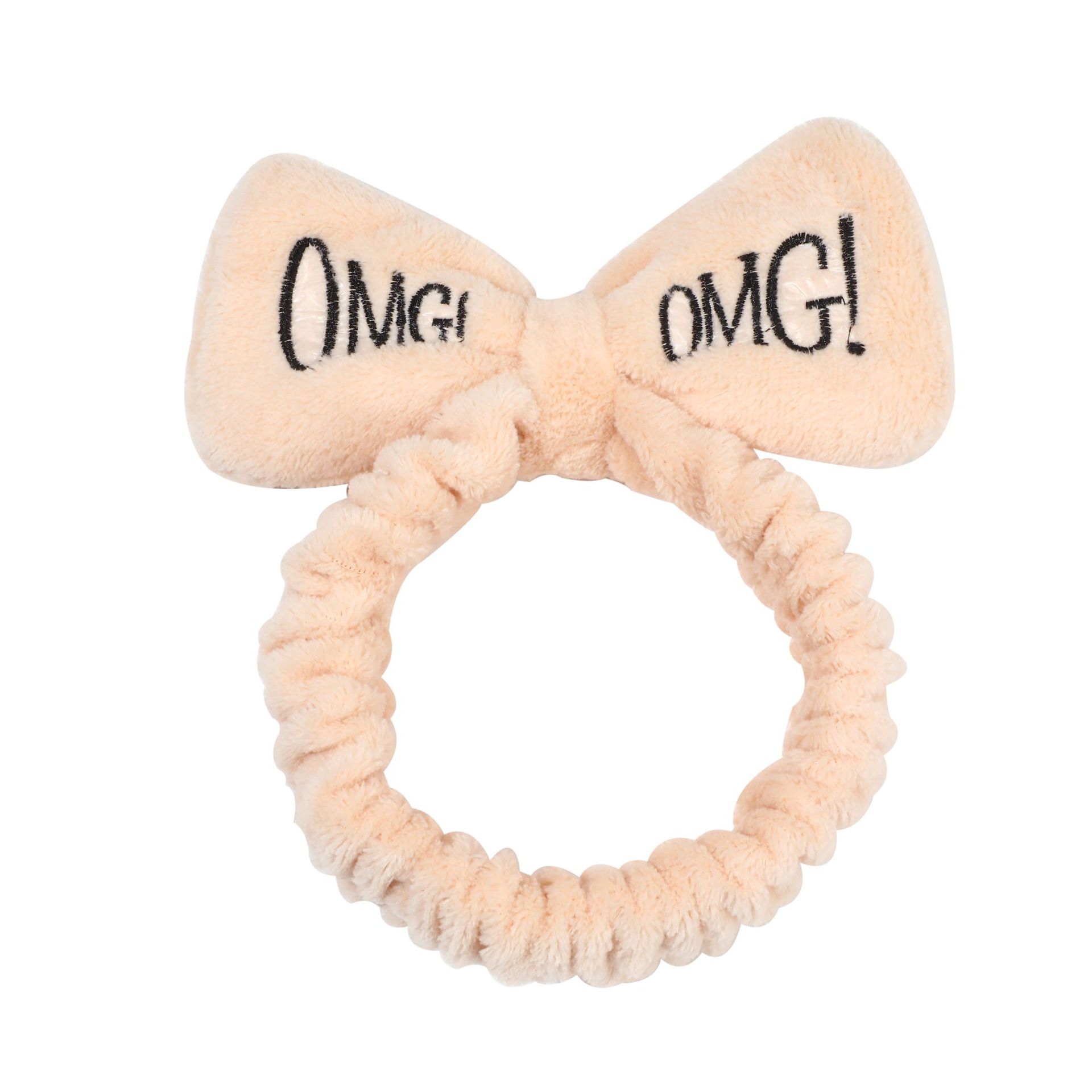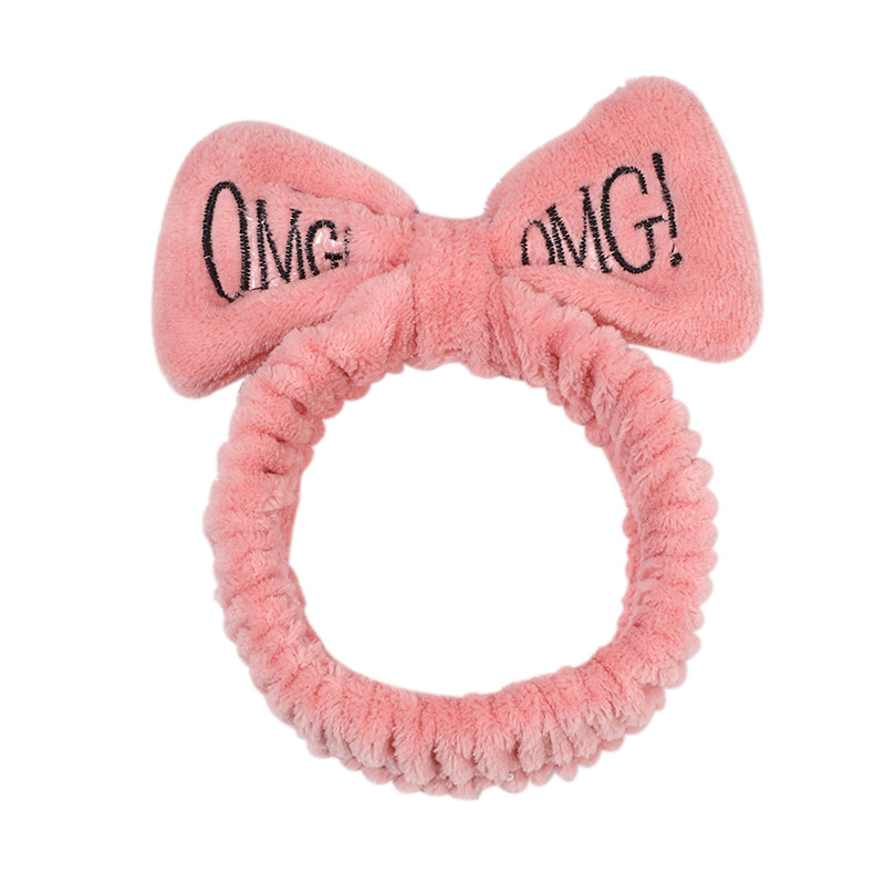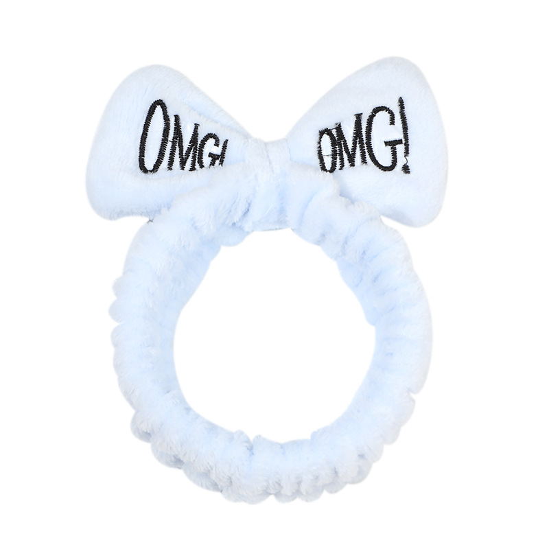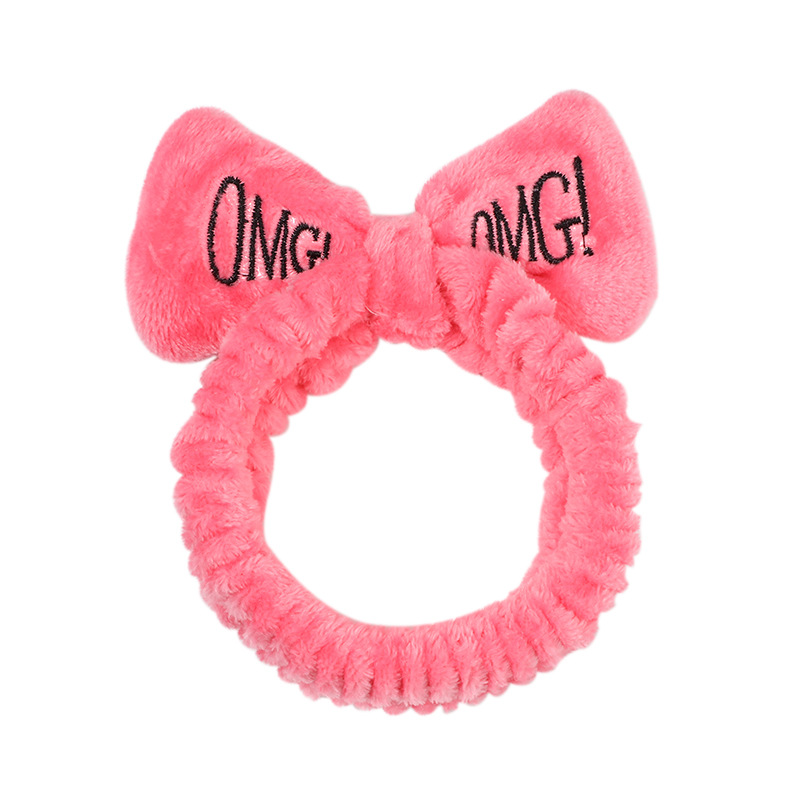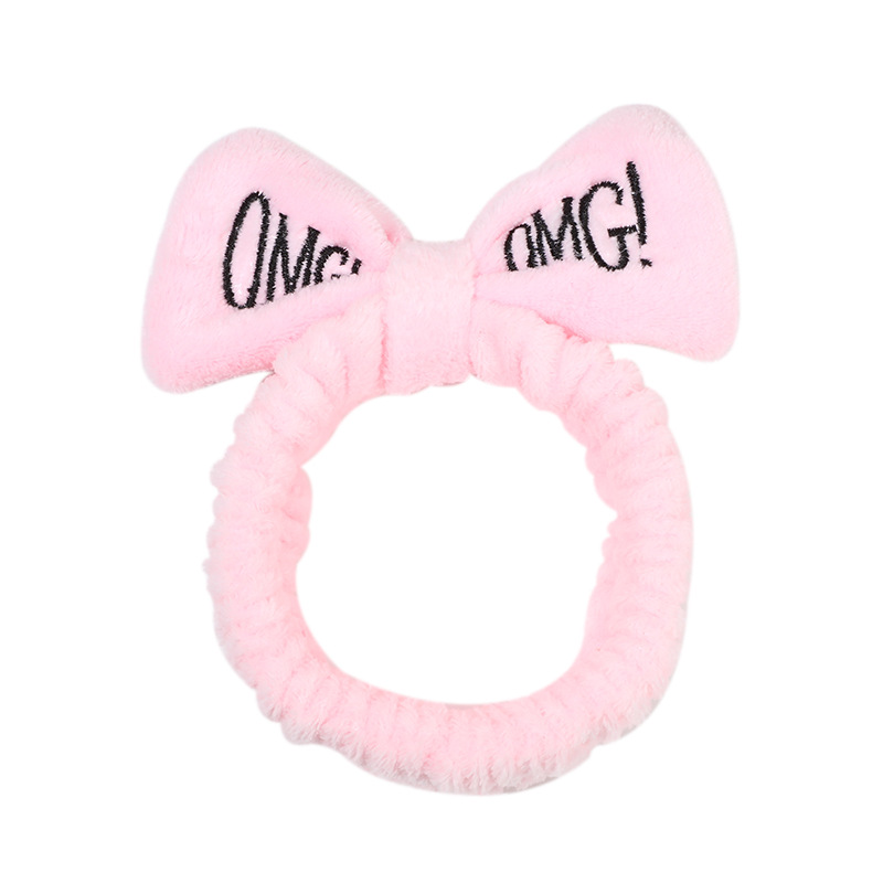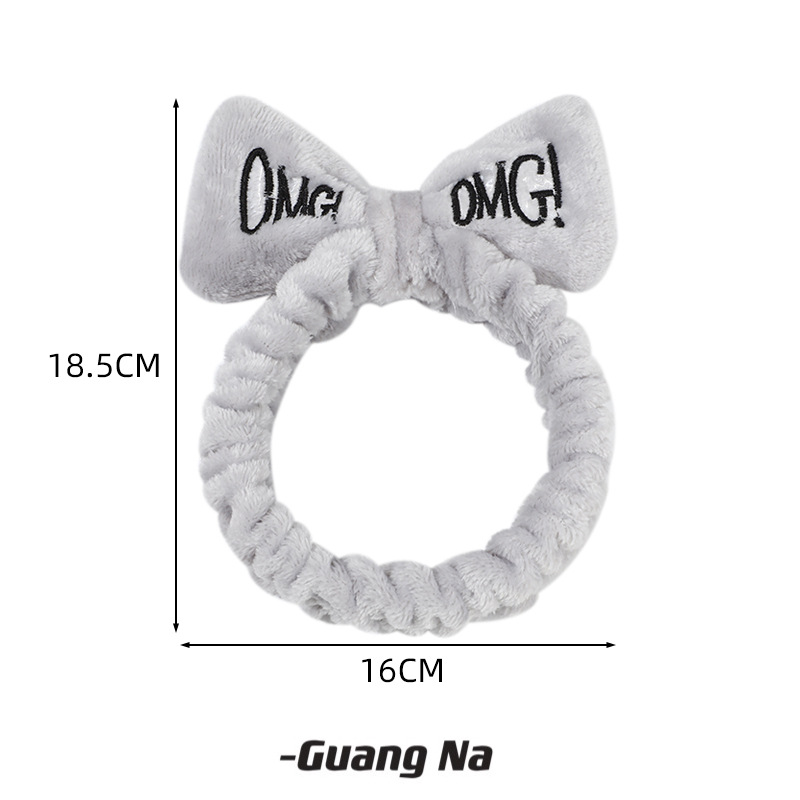 韩国法兰绒束发带 可爱蝴蝶结洗漱头饰剌绣字母OMG多色洗脸发饰