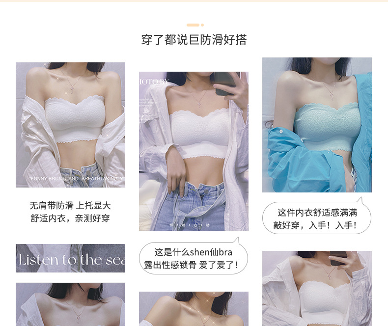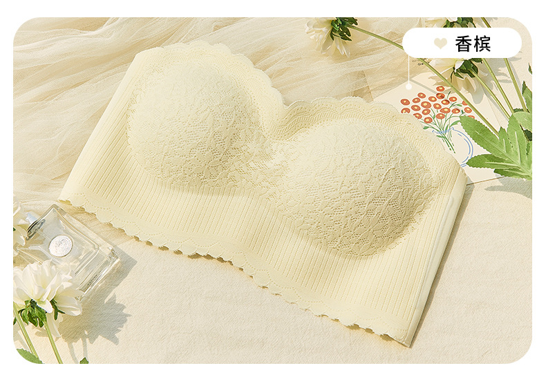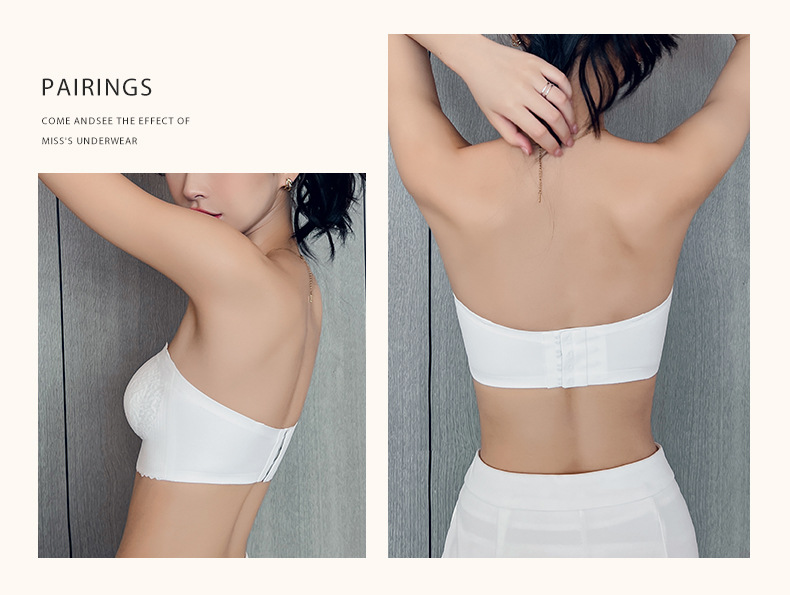无肩带防滑内衣女士美背抹胸小胸聚拢无钢圈收副乳性感文胸罩薄款