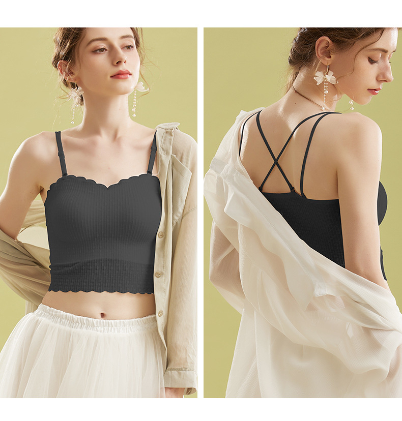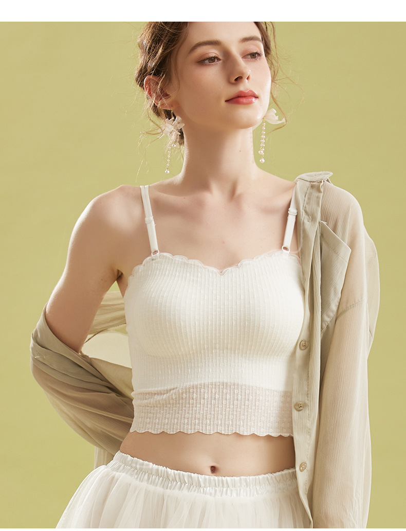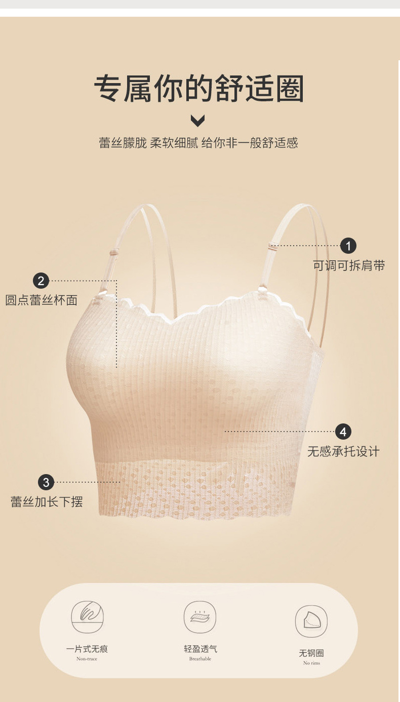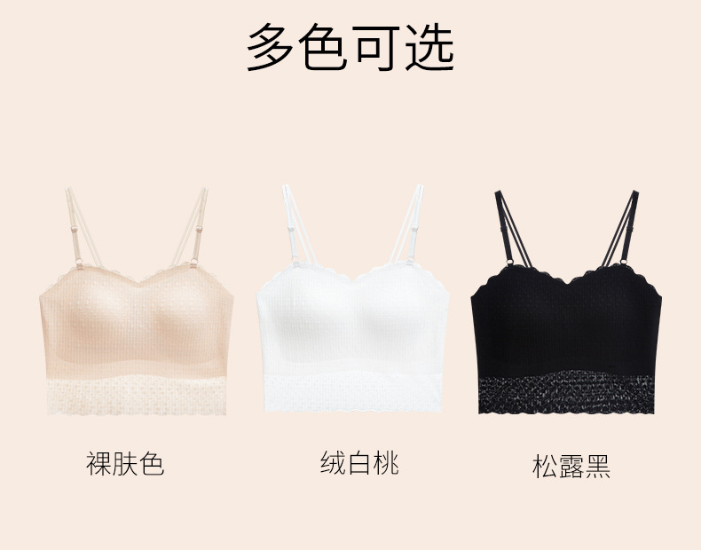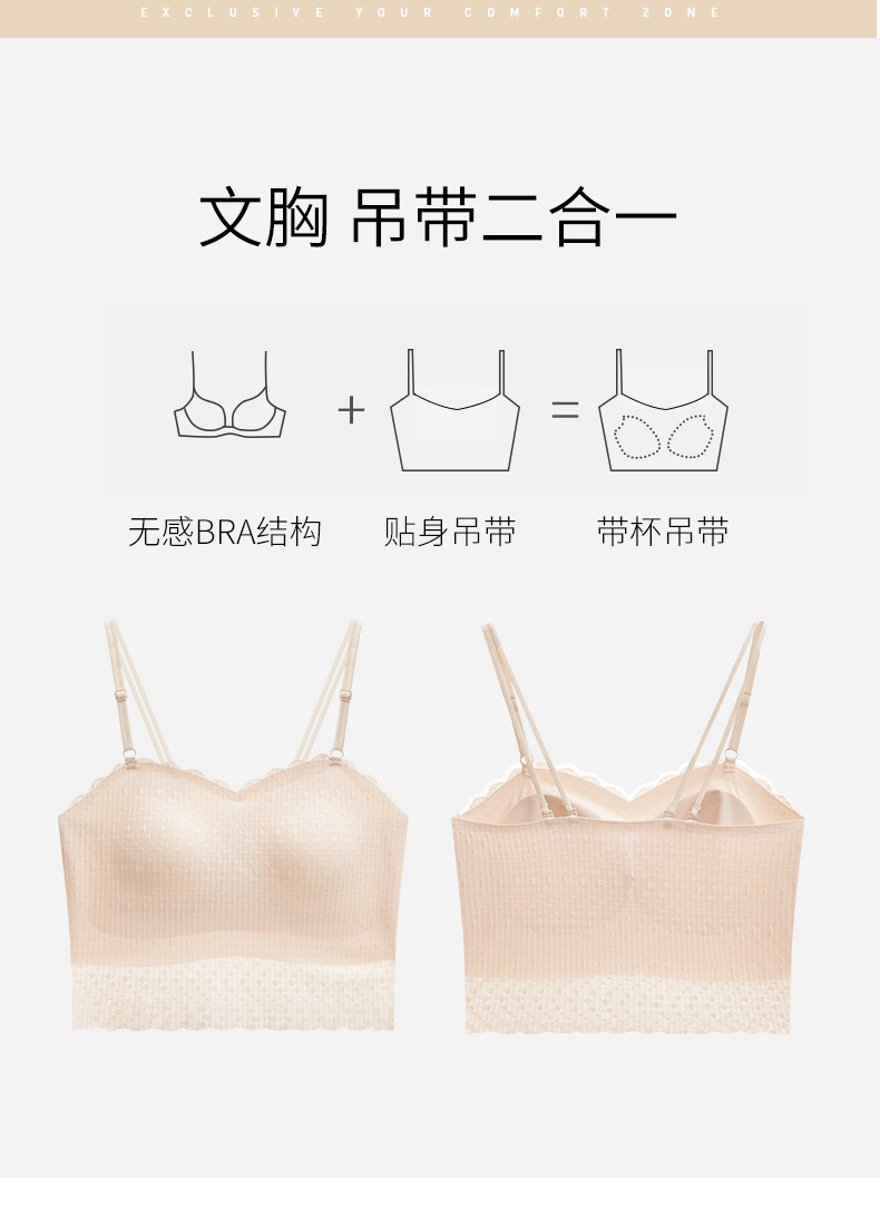 美背吊带内衣女薄款文胸一体式内搭带胸垫小背心蕾丝打底外穿抹胸