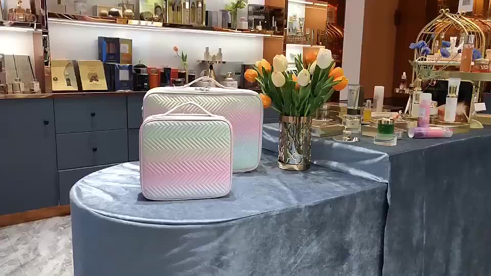 新款波浪渐变色化妆包大容量防水便携可拆卸隔板包专业手提化妆箱