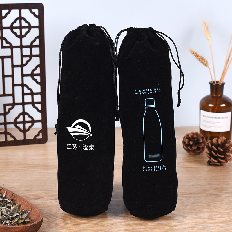 厂家专业定制绒布袋圆底抽绳束口袋长款黑色收纳袋可印刷LOGO