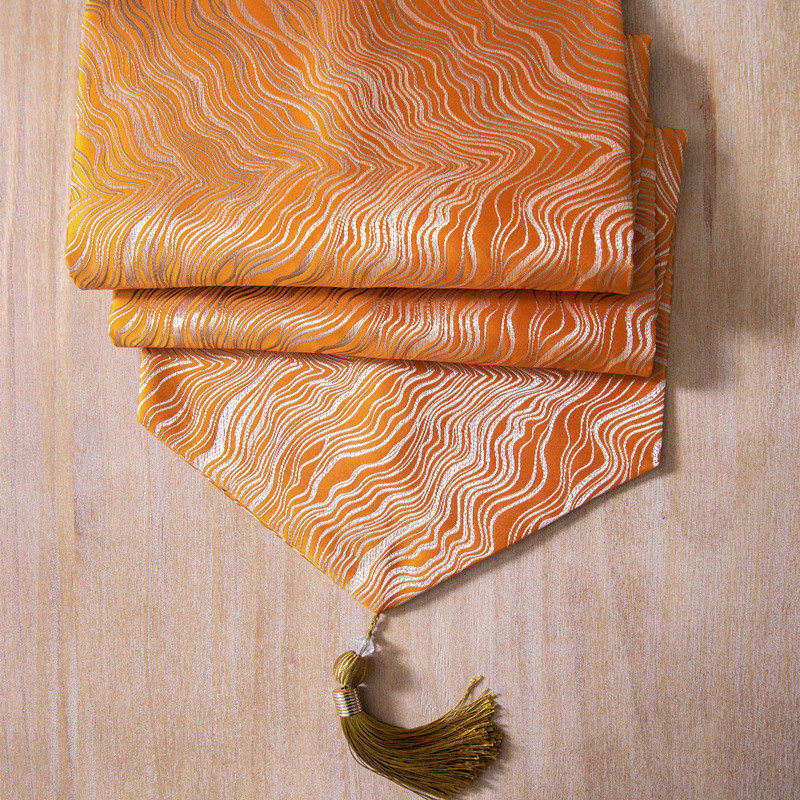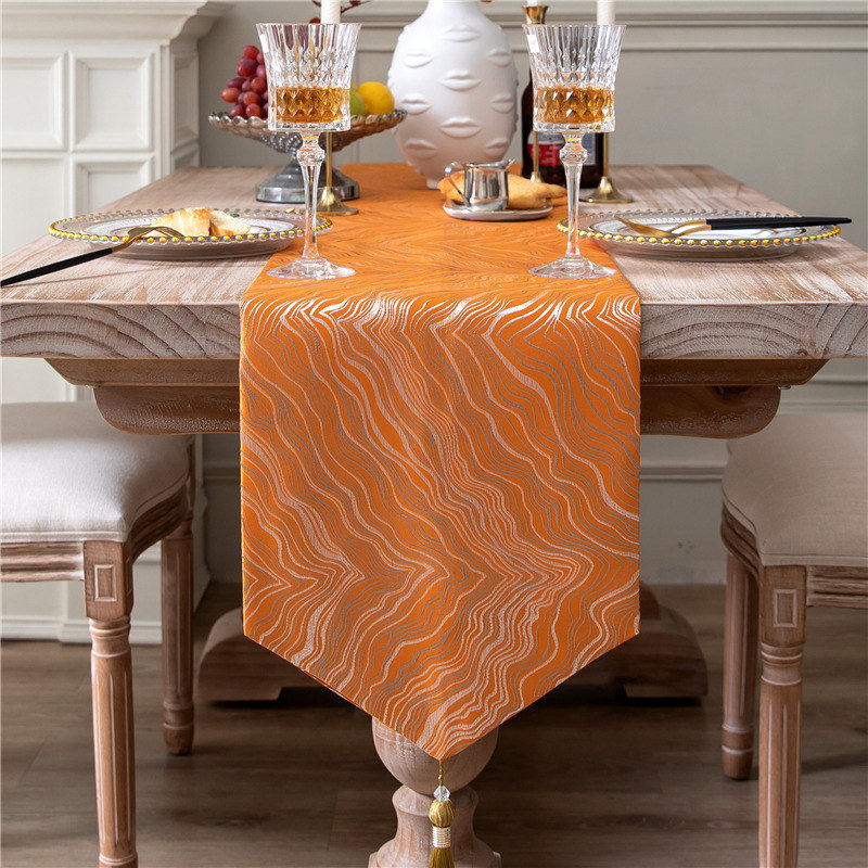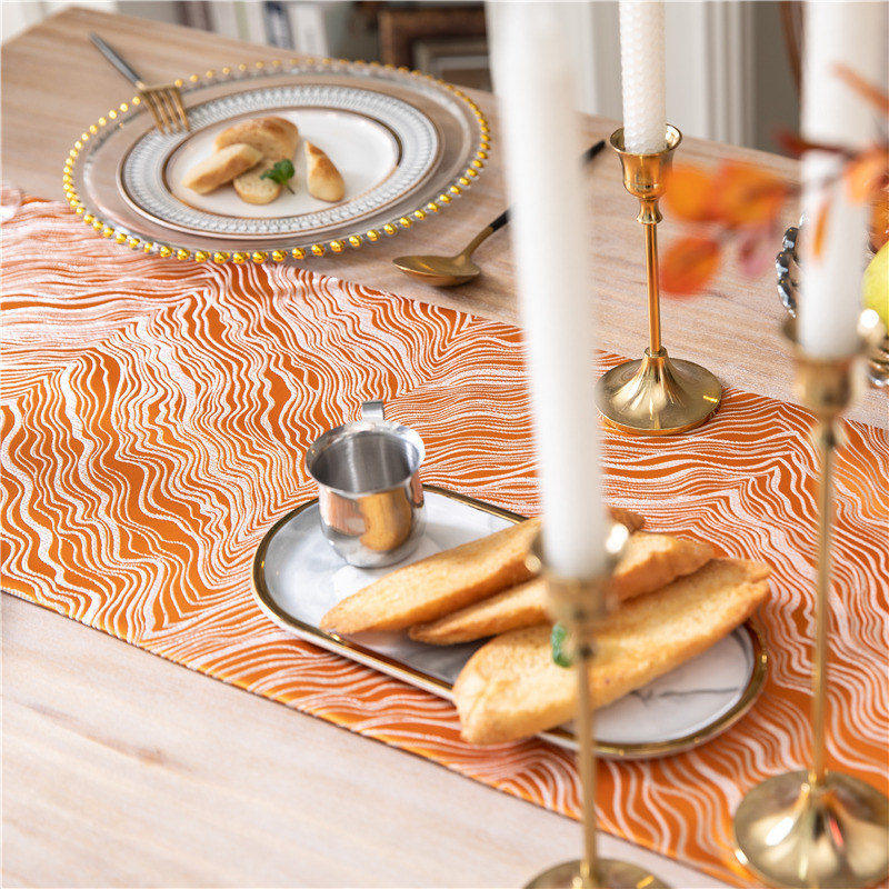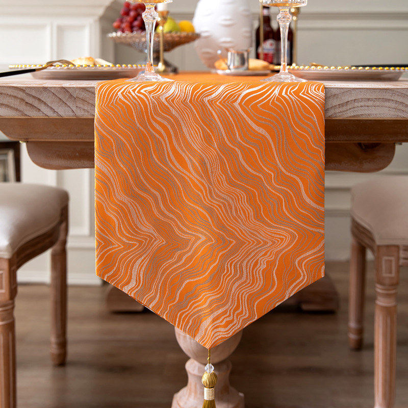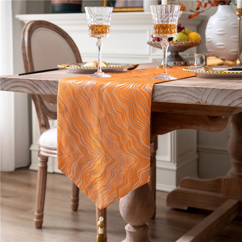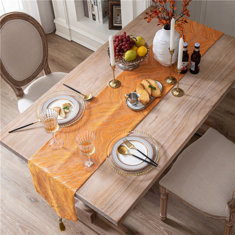 橙色黄色轻奢风桌旗 餐桌长条布装饰布艺美式欧式法式电视柜台布