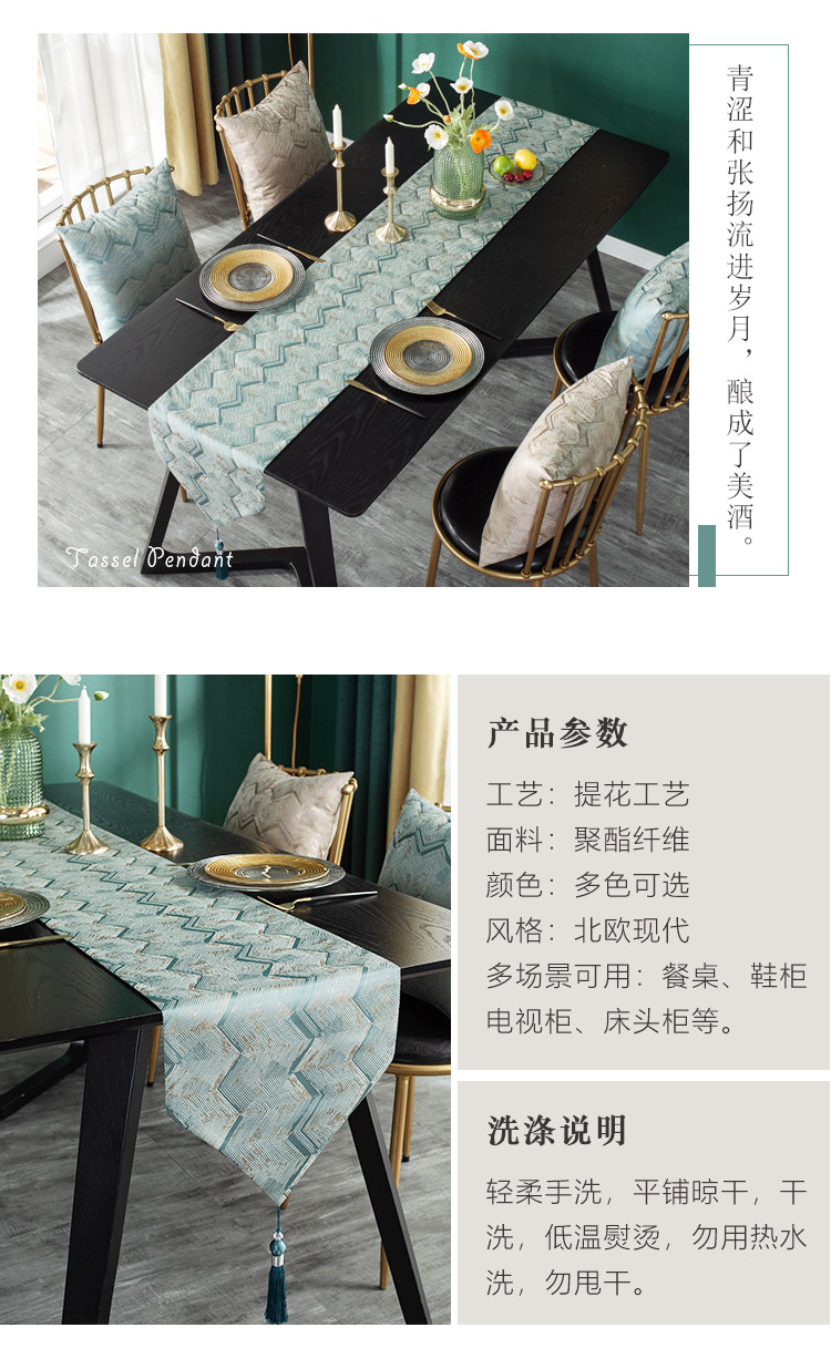 轻奢桌旗北欧现代简约欧式茶几餐桌桌布奢华床旗美式长条装饰