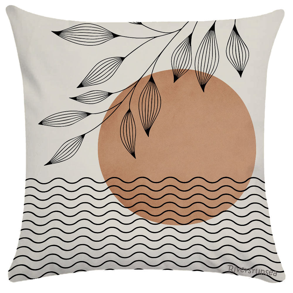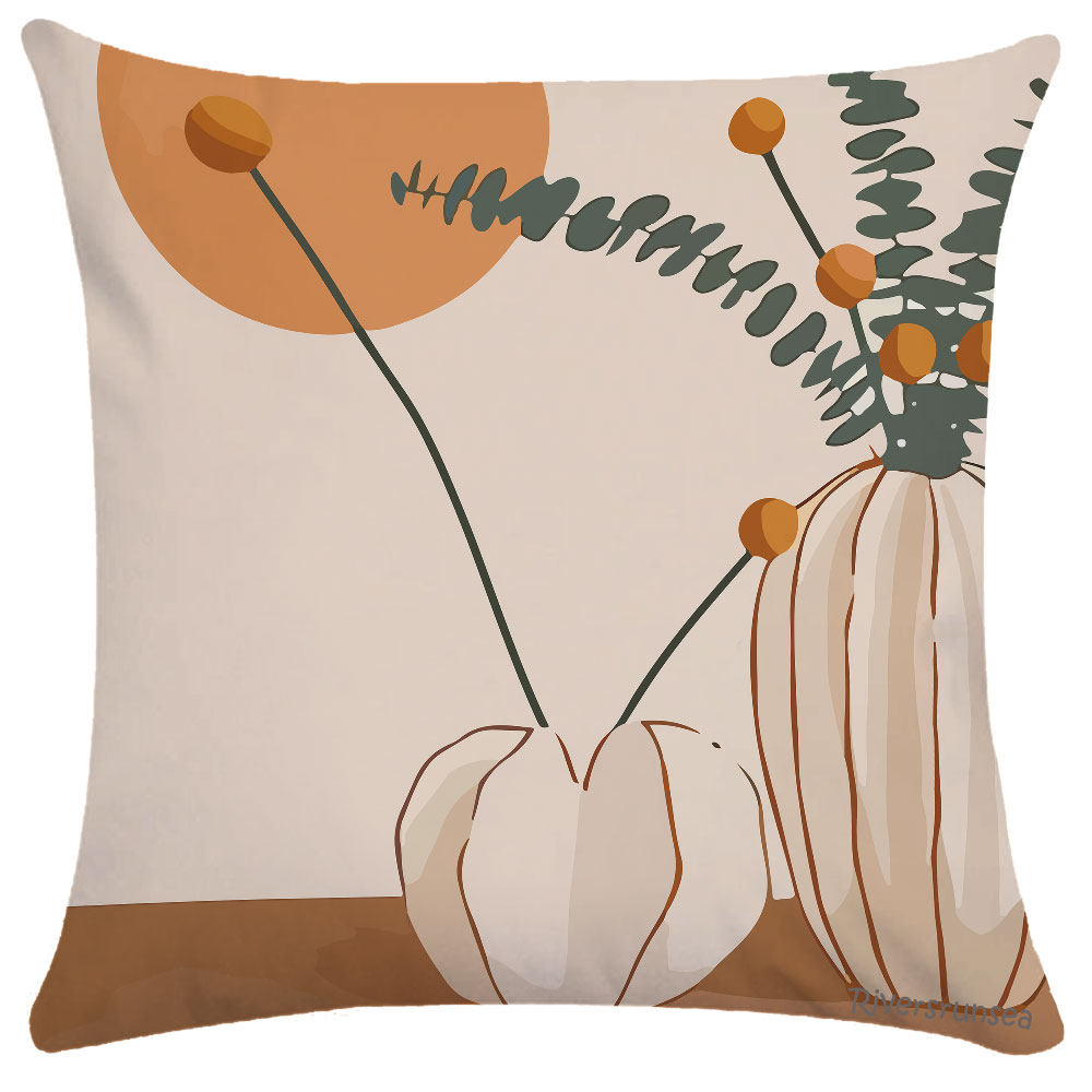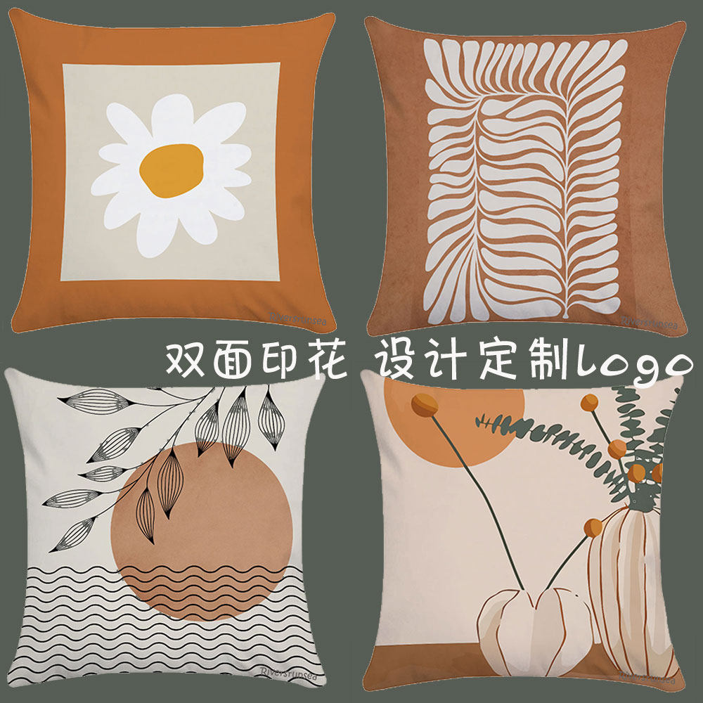 北欧抱枕套沙发客厅45cm现代抽象线条侘寂风抱枕暖色花卉靠枕套