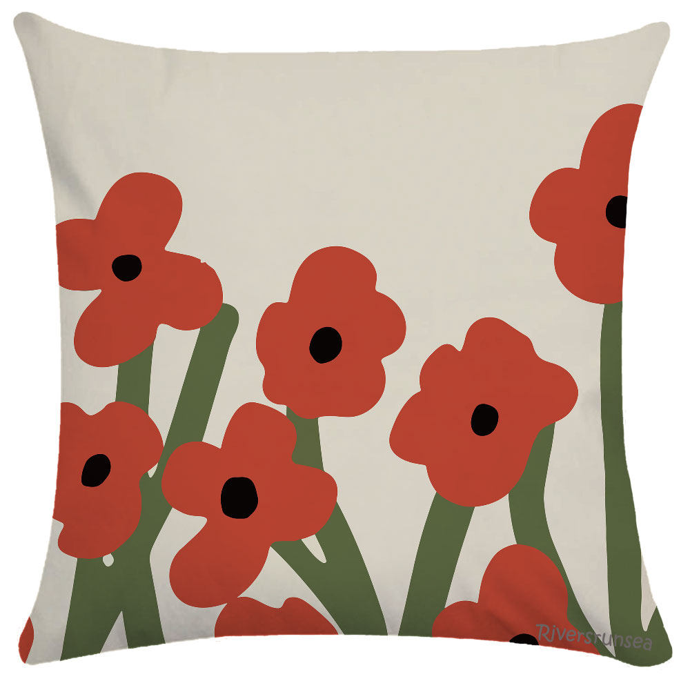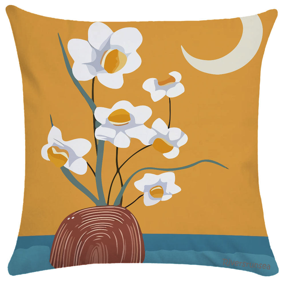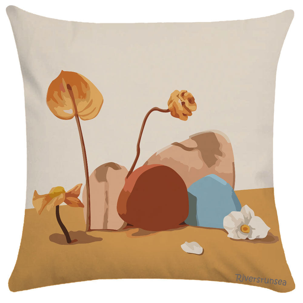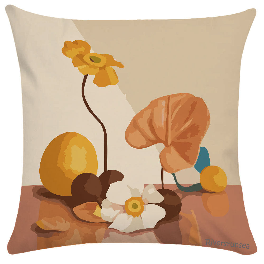 北欧抱枕套沙发客厅45cm现代抽象线条侘寂风抱枕暖色花卉靠枕套