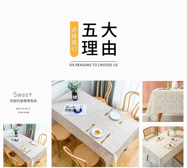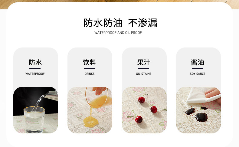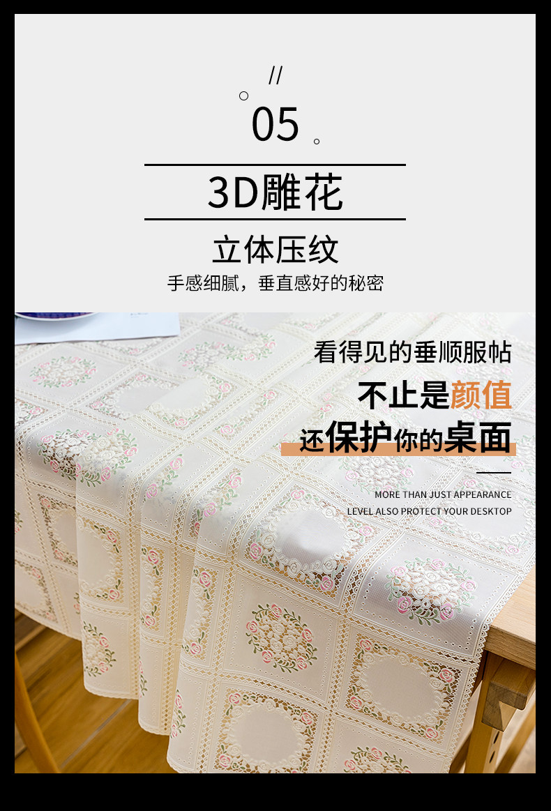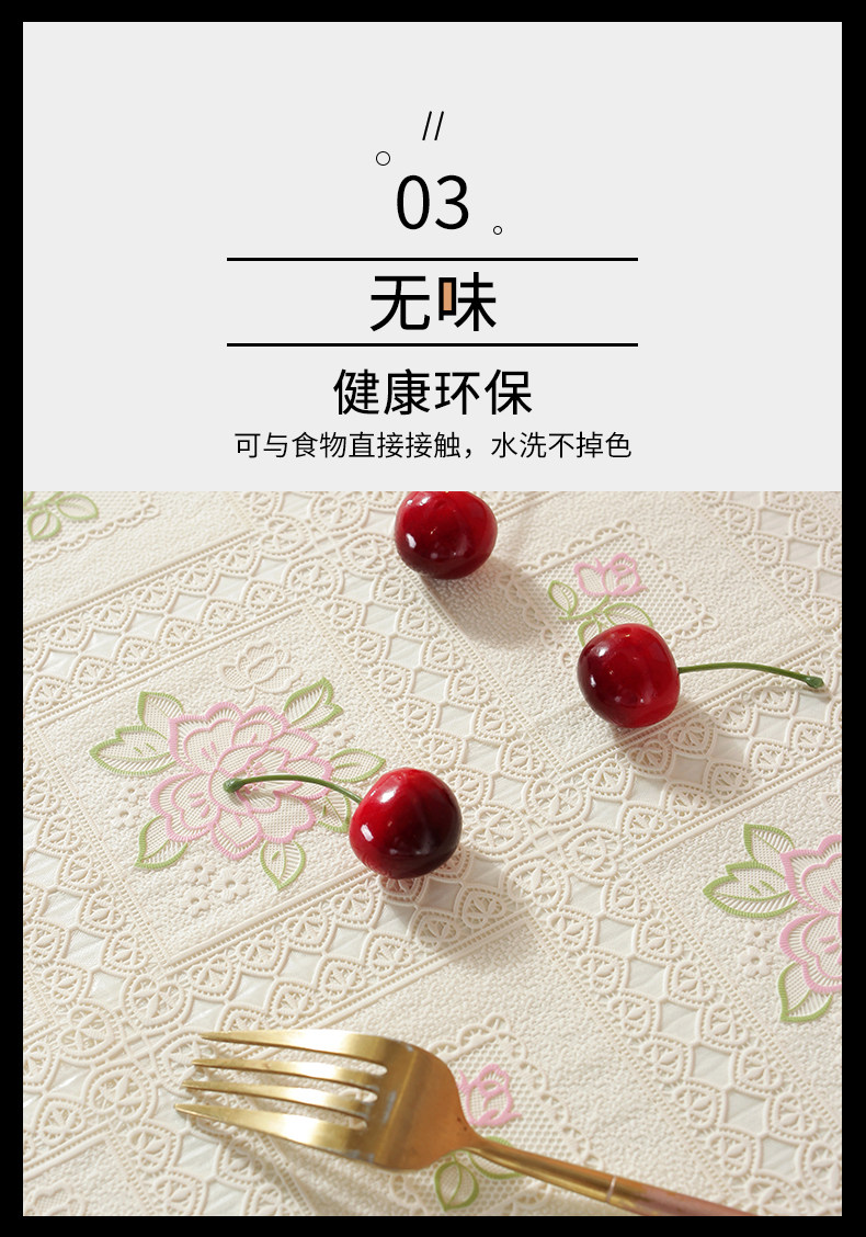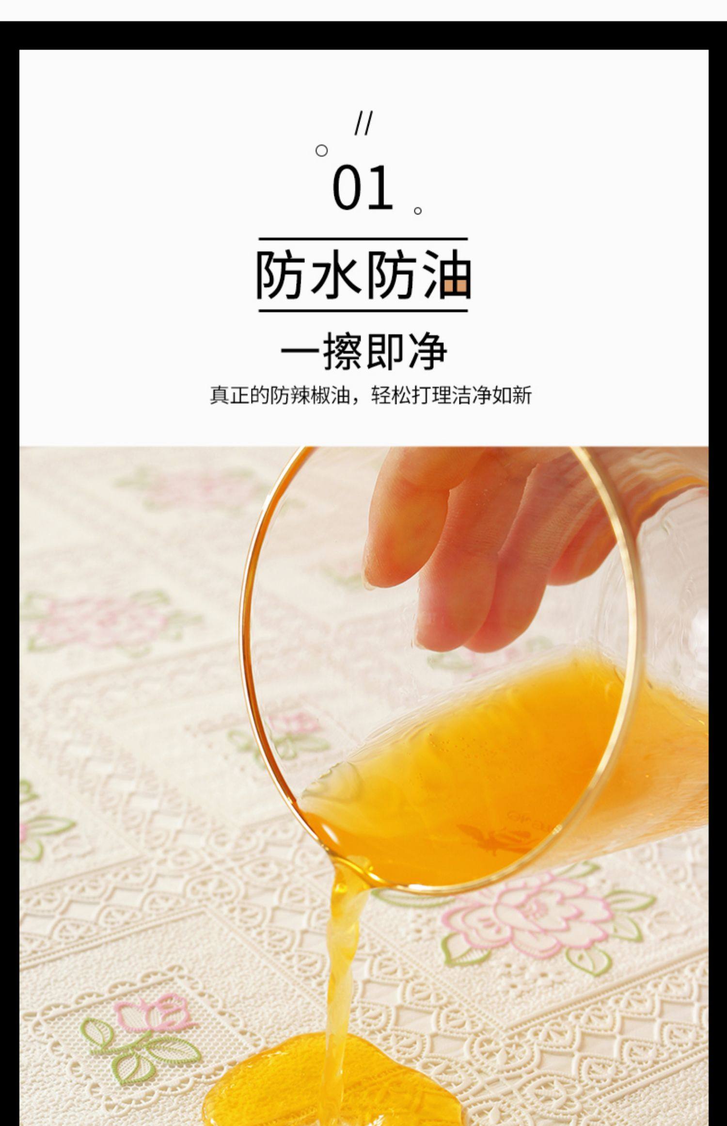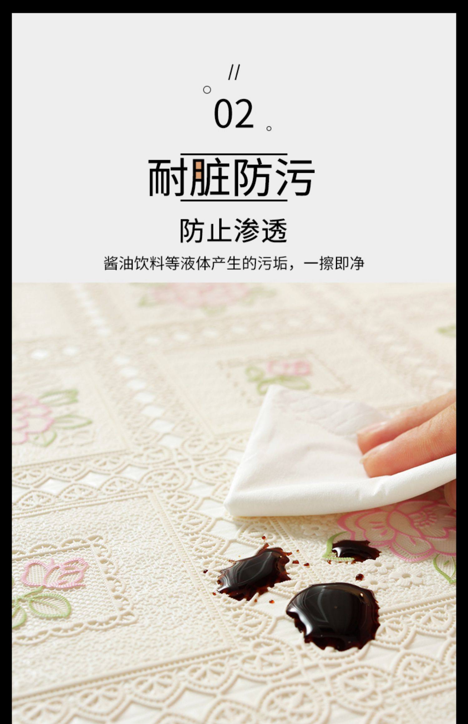翼家蕾丝桌布防水防油免洗防烫白色长方形餐桌台布pvc家用茶几垫