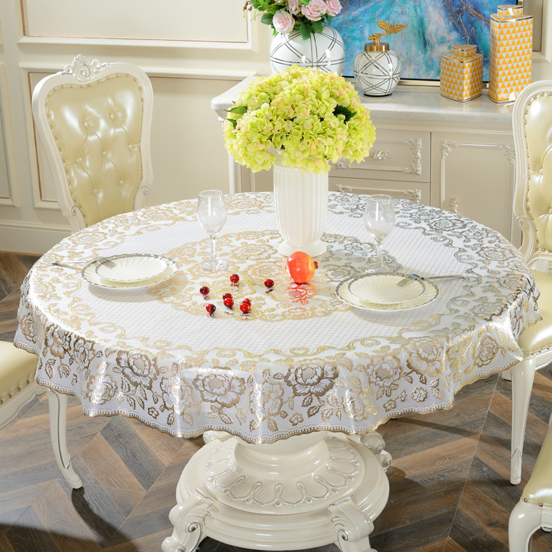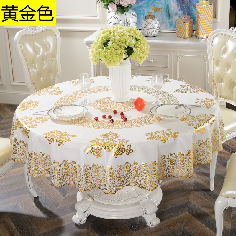 翼家欧式烫金塑料pvc台布家用圆桌布防水防油免洗酒店餐厅桌布