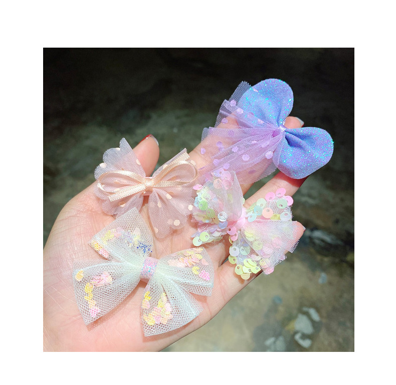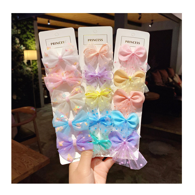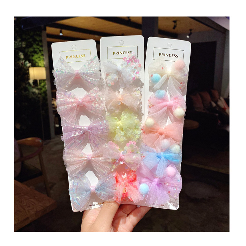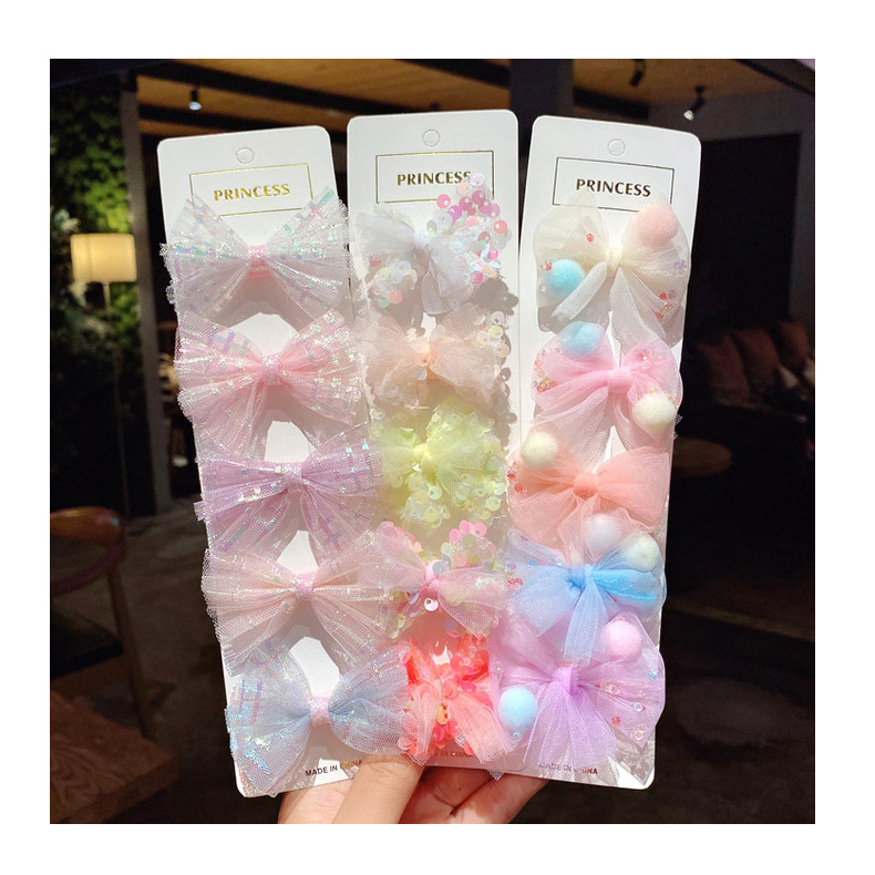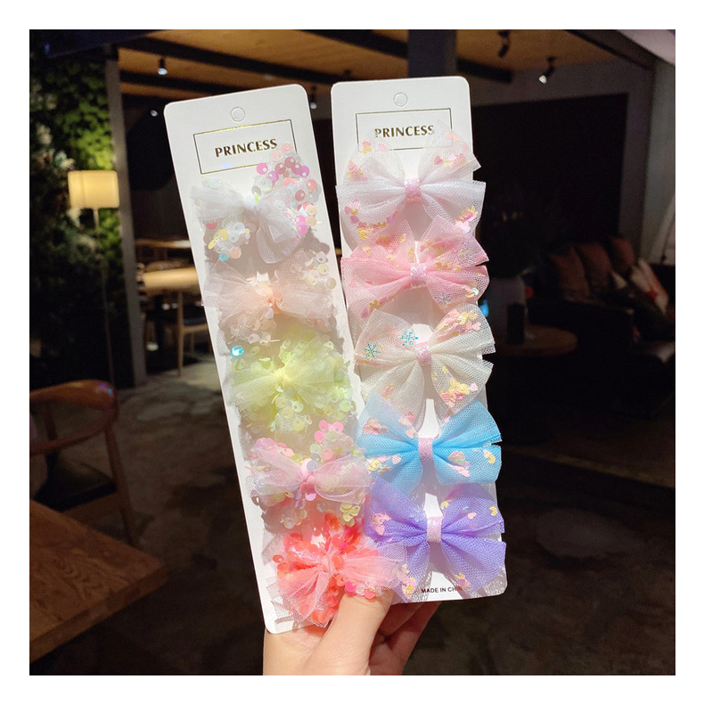 网纱儿童发夹套装 韩版女童蕾丝亮片蝴蝶结发卡可爱公主边夹发饰