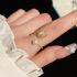 2022夏季新款郁金香戒指女超仙微镶锆石珍珠开口可调节猫眼石指环