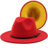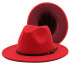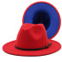 跨境新款男女士毛呢礼帽 欧美时尚红黑拼色帽子皮带平檐爵士帽