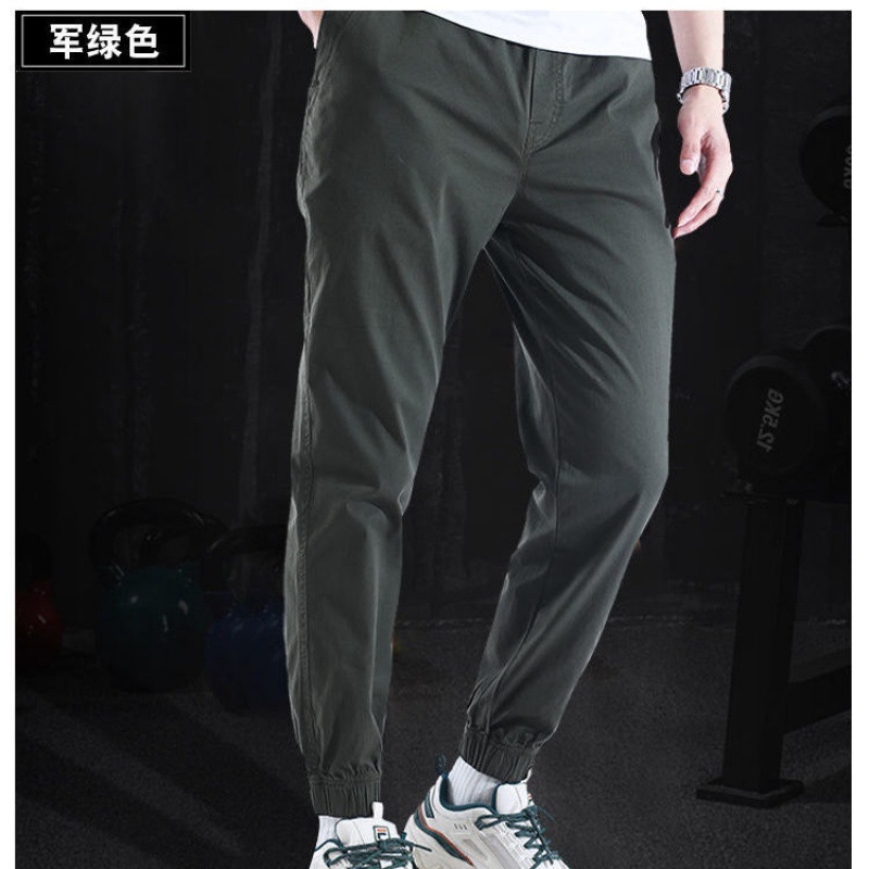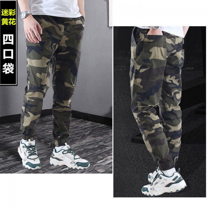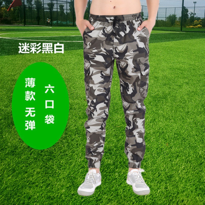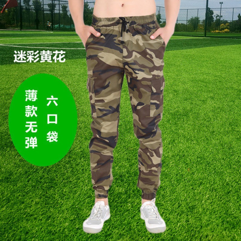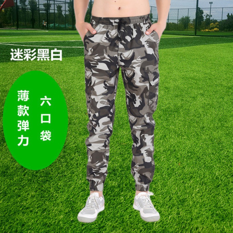 棉夏季薄款宽松耐磨松紧腰迷彩小脚工装裤男潮牌束脚工作服裤子