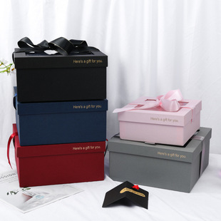 大号粉色蝴蝶结礼物包装盒创意开窗方形礼盒伴手礼透明永生花盒子