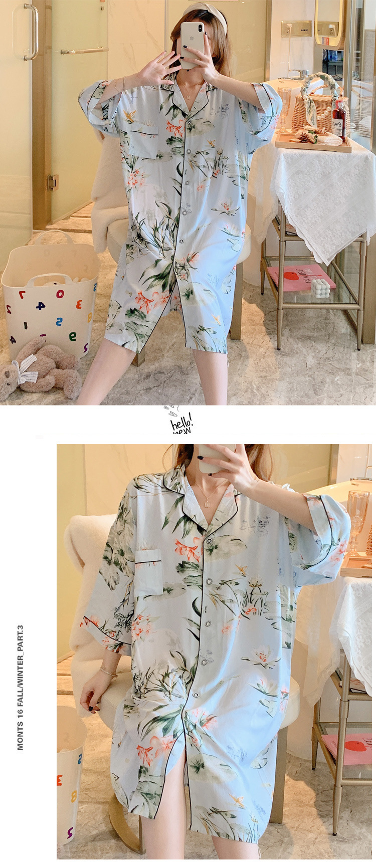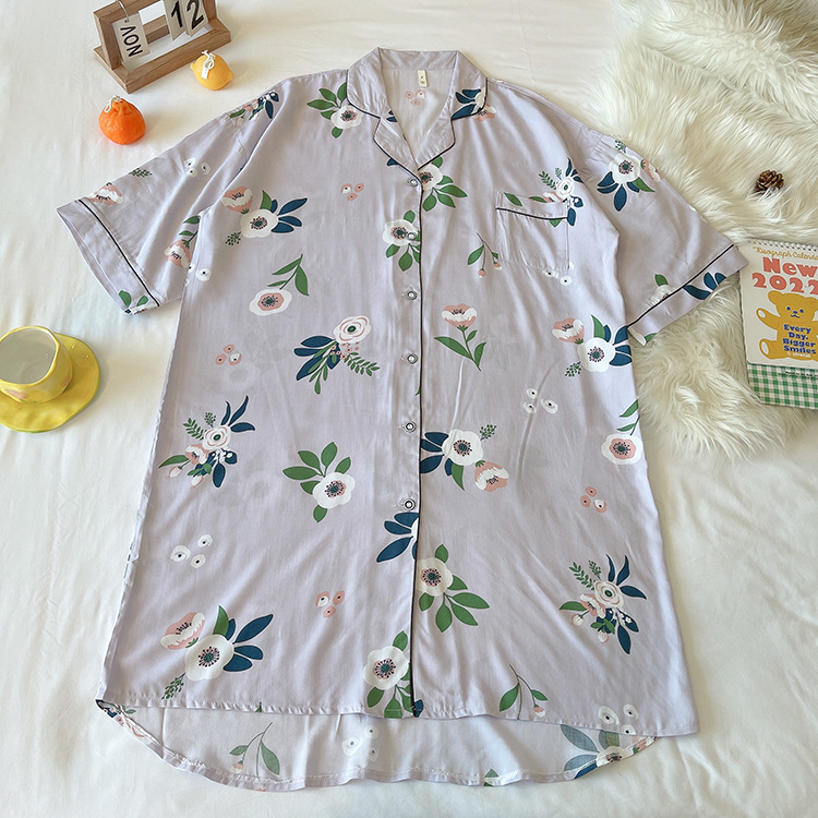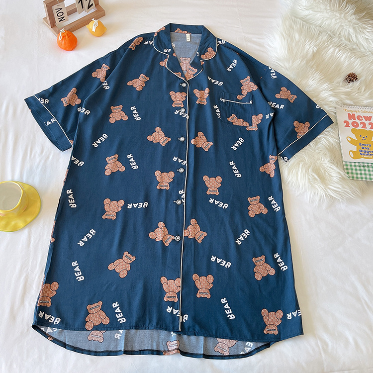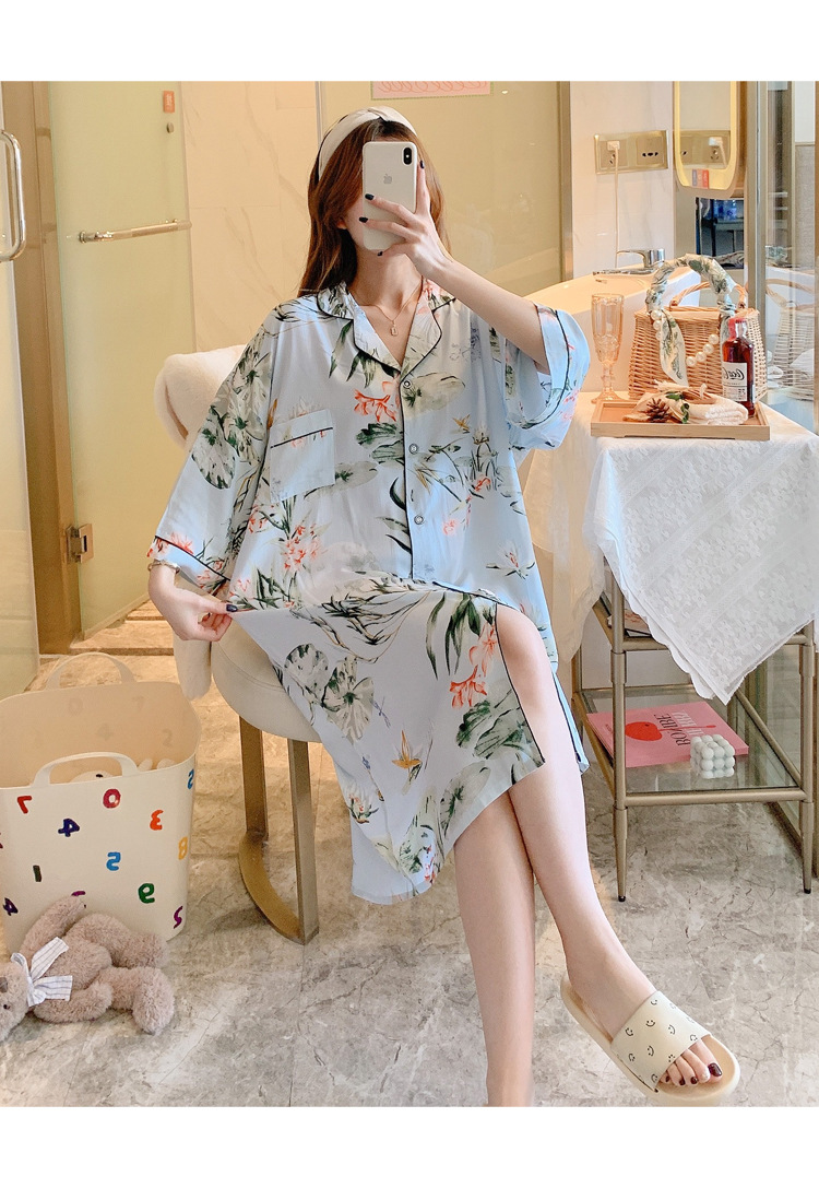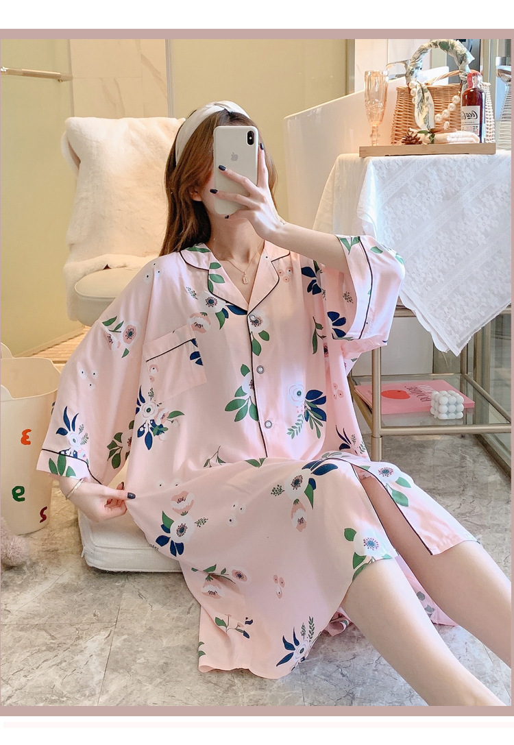 绵绸睡裙女夏天韩版加大码衬衫裙可外穿网红爆款BF风宽松棉绸睡衣