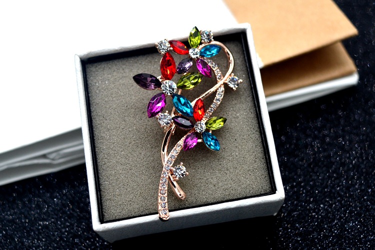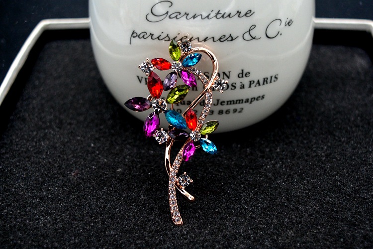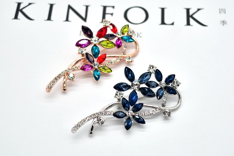 水晶彩色花束胸针别针女简约时尚胸花领花服装配饰批发