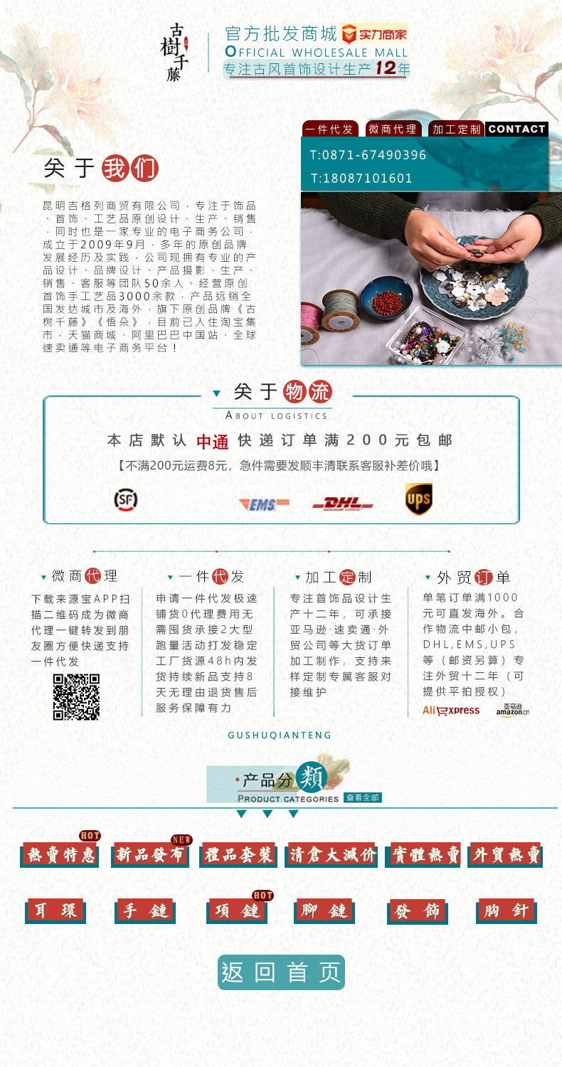 民族时尚 回归自然、崇尚传统的思潮,令年轻的人们不再满足于千篇一律。现如今,自然美、个性美、返璞归真成为一种时尚,随之而来的是一股个性饰品潮。工业产品缺乏一定的人情味,相比而言,民族饰品雍容素雅,落落大方。少数民族饰品,浓郁的文化、气息,豪迈的造型风格,不但可以打动你的眼睛,也可以撞击你的心灵。在这返璞归真的世界里,藏饰的神秘感和些许的浪漫心绪更是令人心驰神往。石头、珊瑚、玛瑙、白银等是制作民族饰品的主要原料,银针、银托、头插(傣族)、小银铃等是民族化饰品的主要设计品种。藏族人佩戴月芽银牌,象征她的贞洁,而银牌上镶嵌的玛瑙宝石,则默默地保佑吉祥安康,以红色、蓝色珠宝为主的藏饰兼有一份难掩的洒脱与真诚,你会被它流露出的强烈的生存意识深深震动。少数民族饰品加工工艺复杂,无规模化生产,使得产量不会很大;现在的产品全部是工匠手工制造。