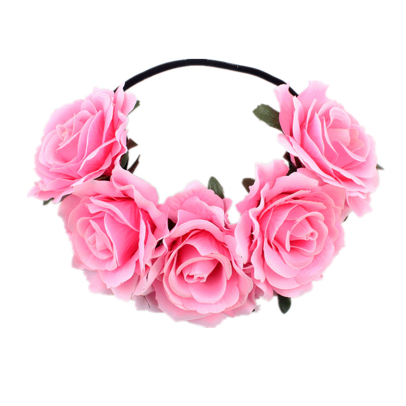 爆款欧美新娘度假花环 狂欢晚会派对头饰 5朵仿真玫瑰花朵发带女