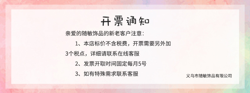 本厂专业生产批发流行饰品,产品为仿韩饰品,批量生产,基本上手工加工,不同批次产品可能会有差异,小瑕疵无法避免,大家都应该明白一分钱一分货的道理,不要凭自己的想像,每个人的想像都是无限大,这个我们满足不了,请见谅!对于质量非常苛刻的客户,请到专柜购买!