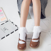 秋冬新款甜美双层花边袜透气可爱公主袜中筒袜厂家81108