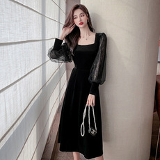 春装2022年新款女法式温柔风桔梗别致感惊艳红色碎花连衣裙子女装