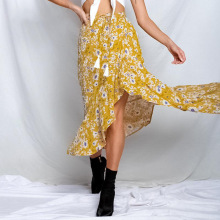 欧美跨境独立站亚马逊夏季新款荷叶边无袖V领包臀碎花连衣裙女装