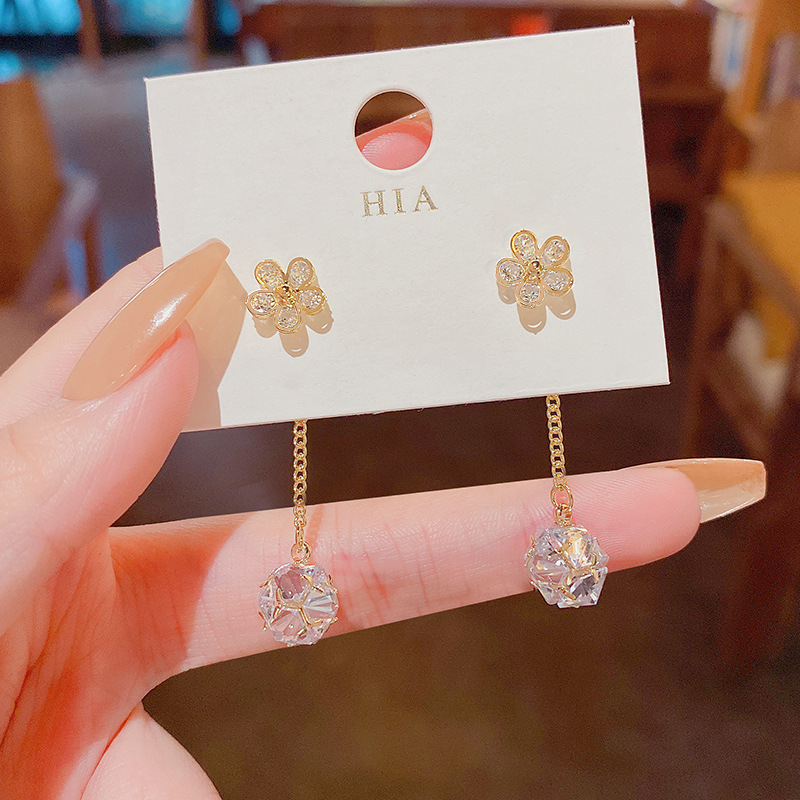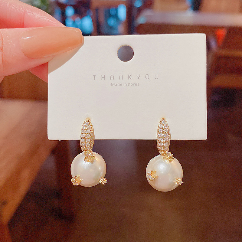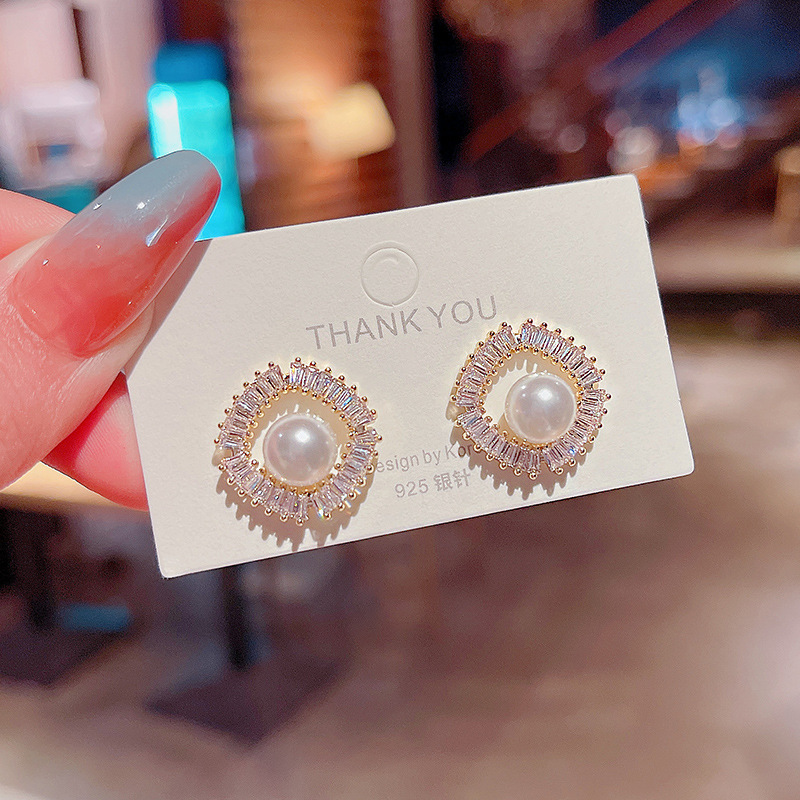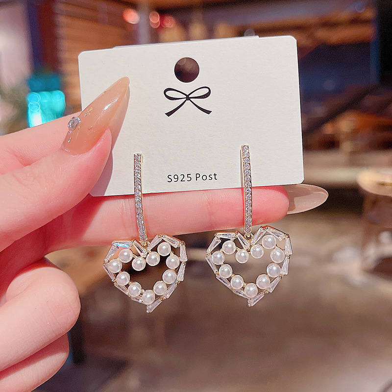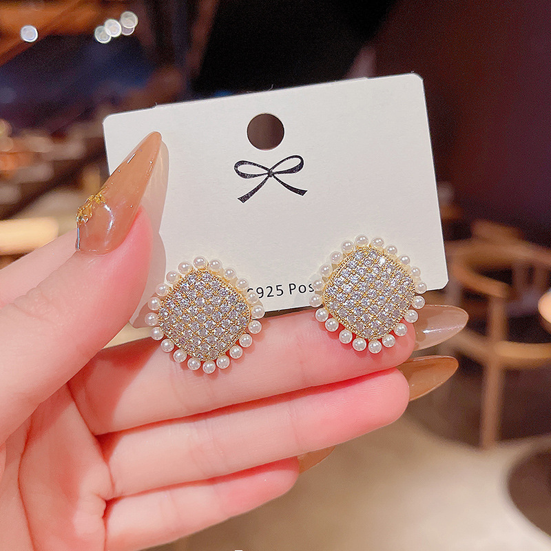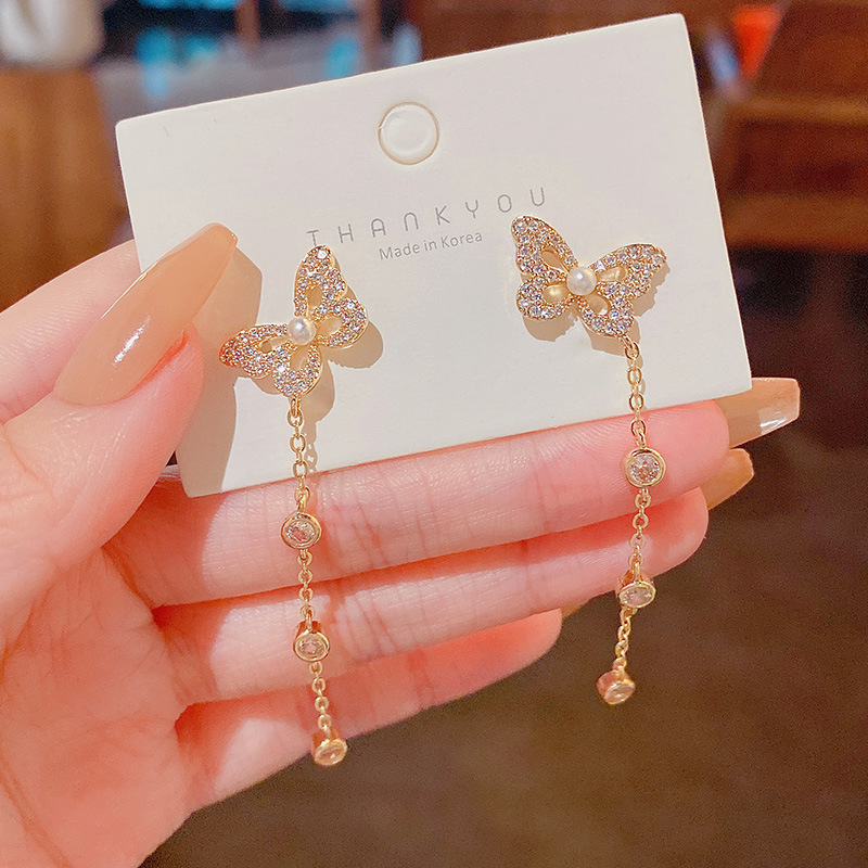 饰品S925银针锆石微镶精致珍珠耳钉女轻奢小众长款流苏耳环批发