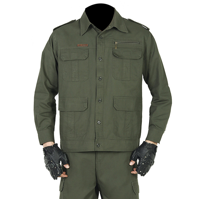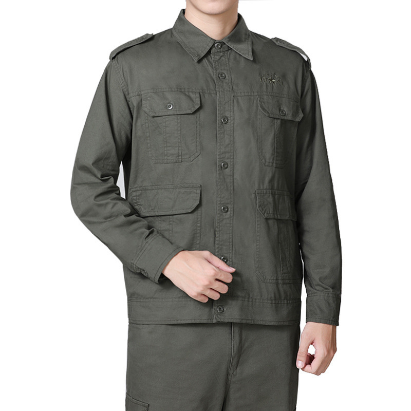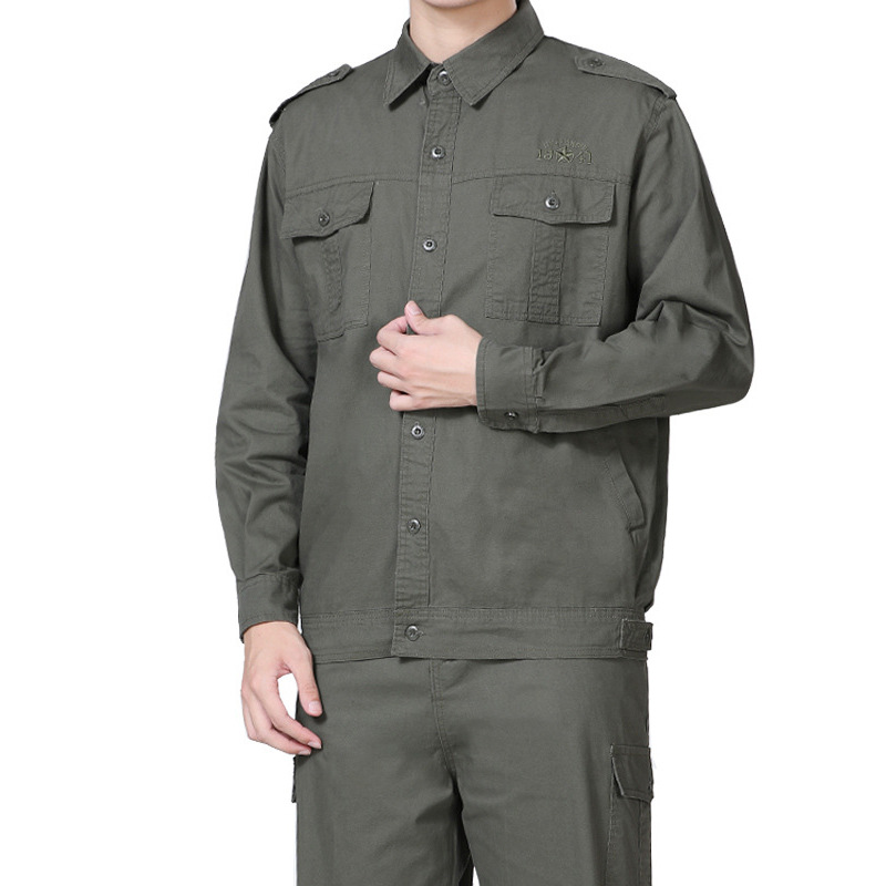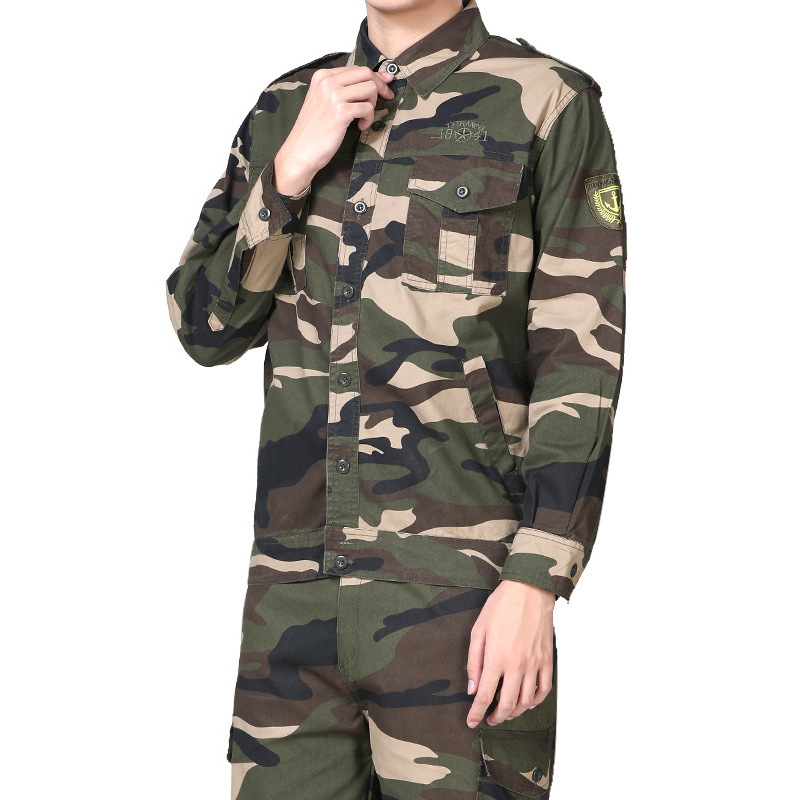 劳保工作服迷彩作训服 军绿帆布涤棉迷彩服套装 春秋军训迷彩服