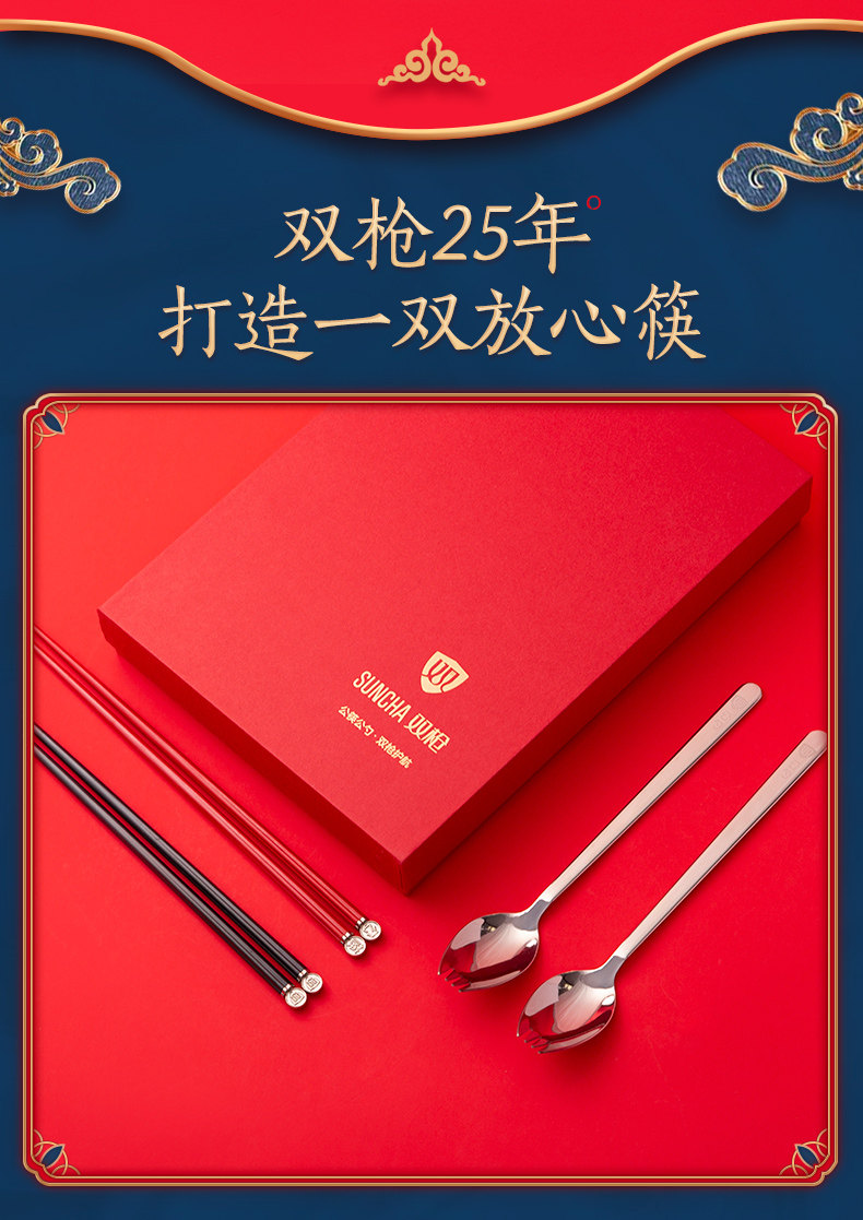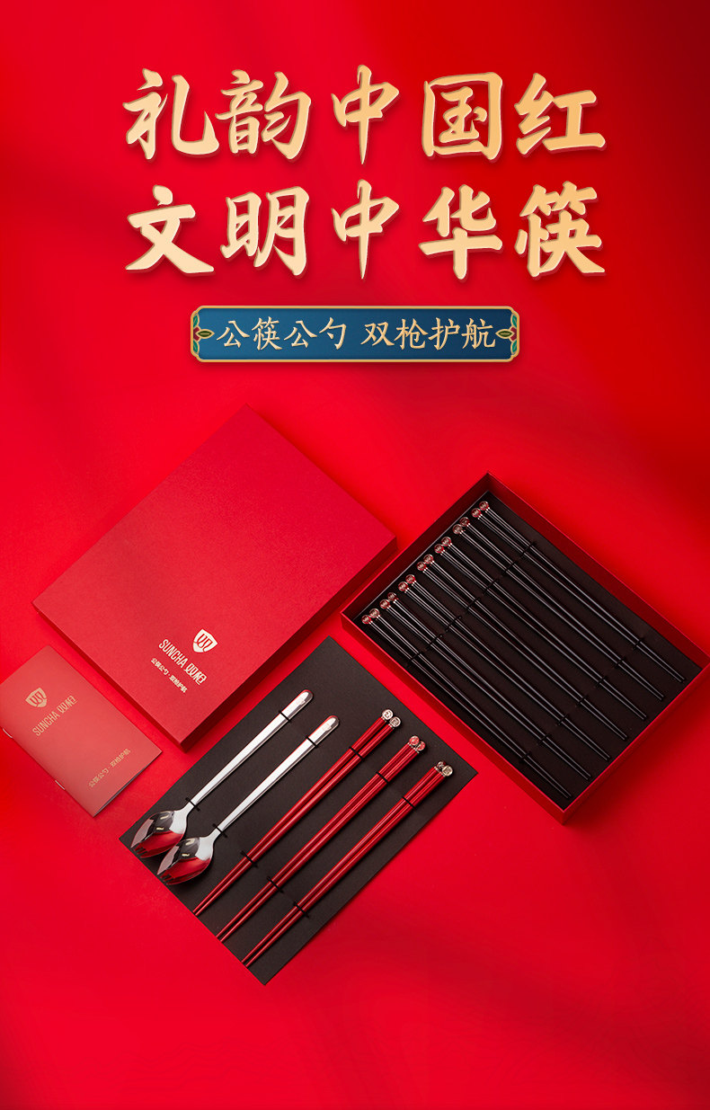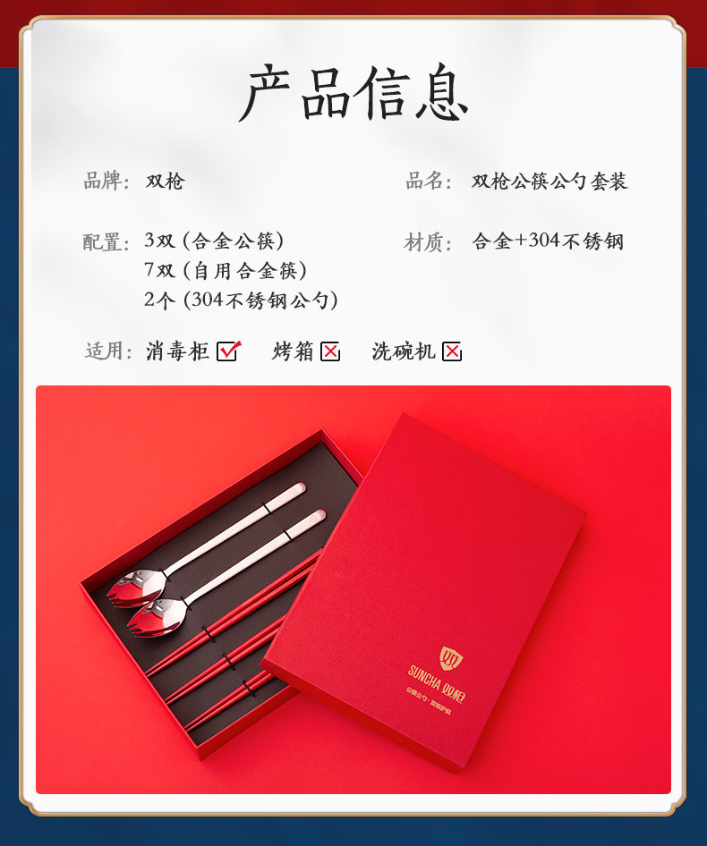 双枪合金筷子家用筷送礼公勺公筷礼盒筷创意不易发霉10双礼盒装