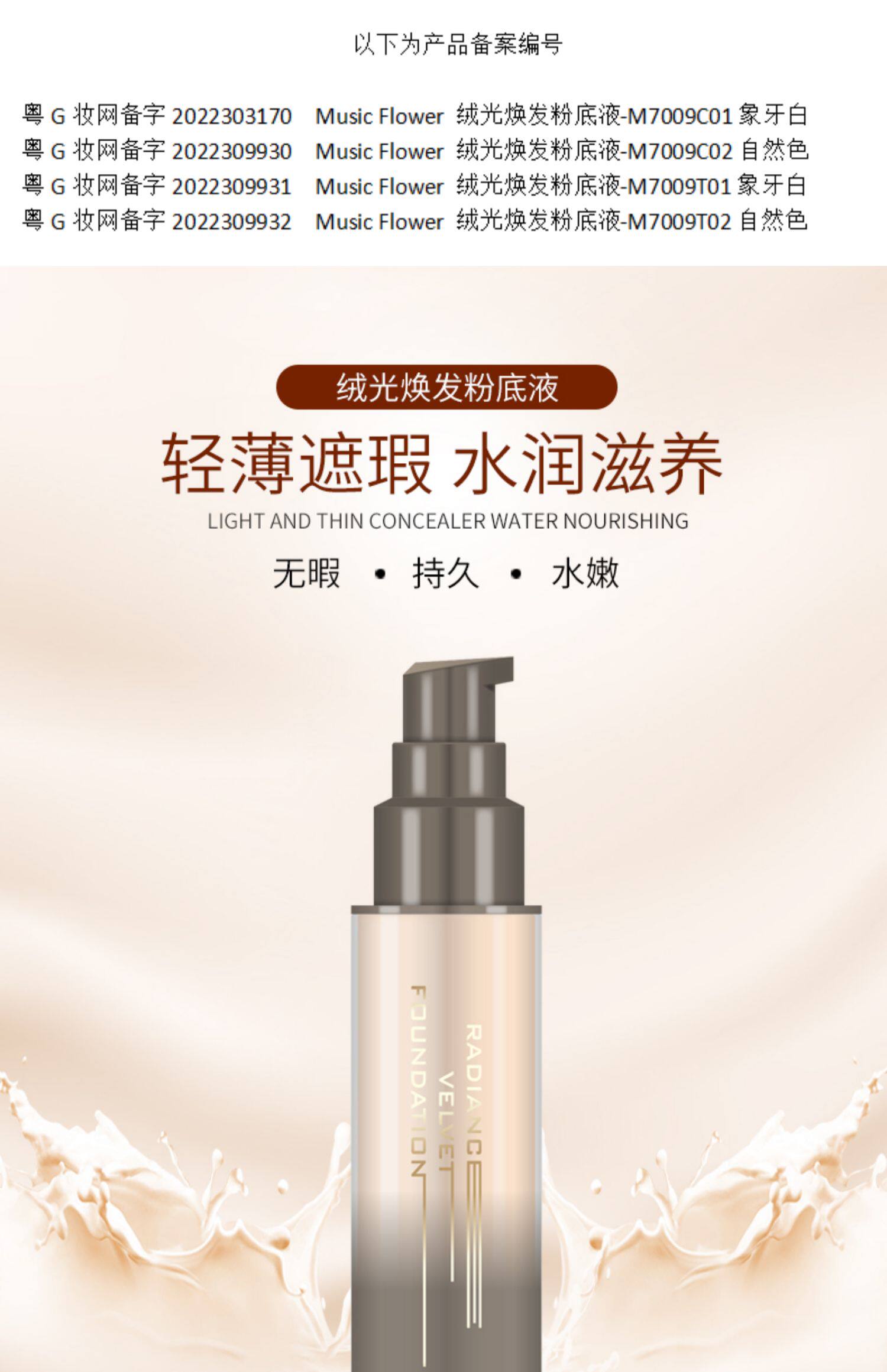 Music Flower沁彩长效持久保湿无痕遮瑕亮肤绒光焕发粉底液M7009