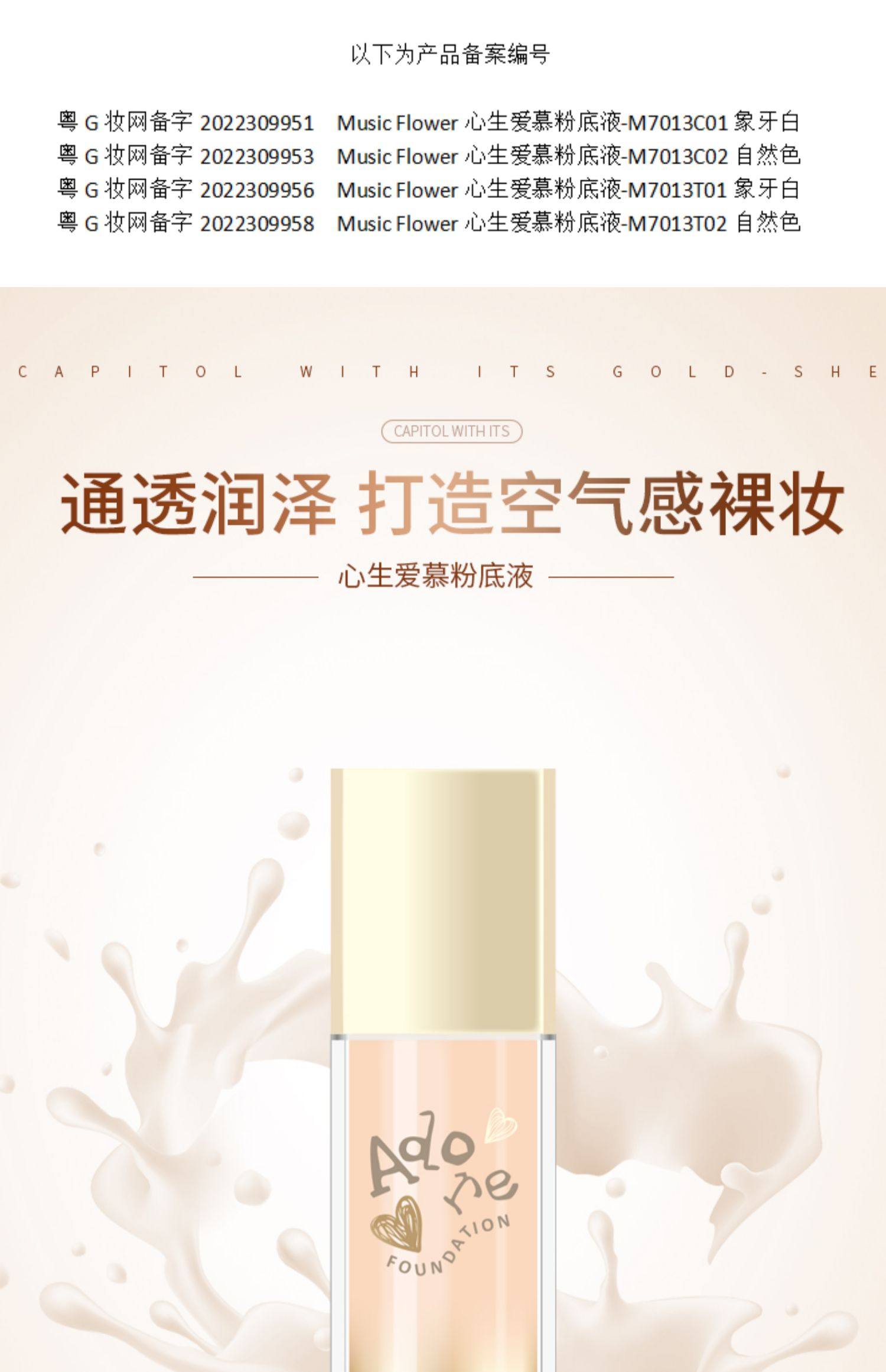 Music Flower自然轻薄 长效持久 防水防汗心生爱慕粉底液M7013